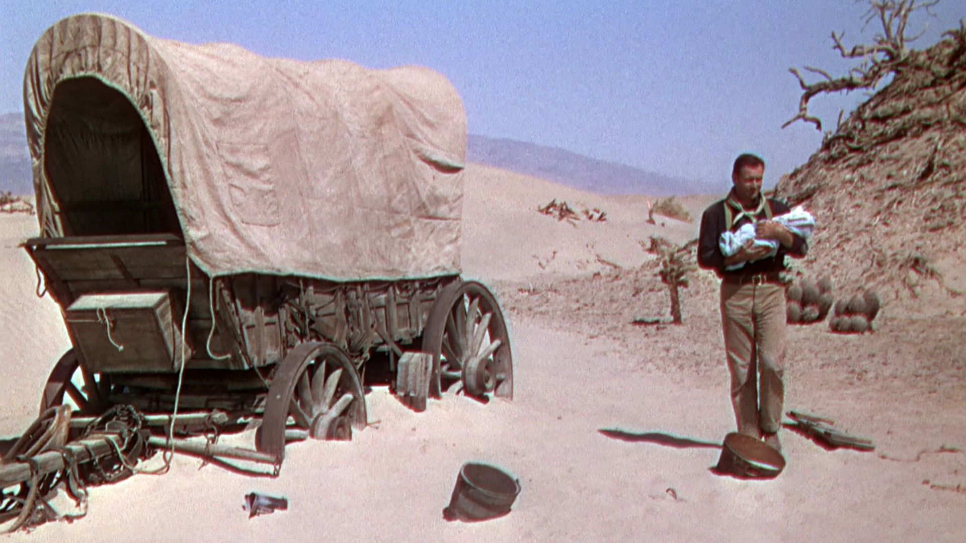Three outlaws on the run discover a dying woman and her baby. They swear to bring the infant to safety across the desert, even at the risk of their own lives.