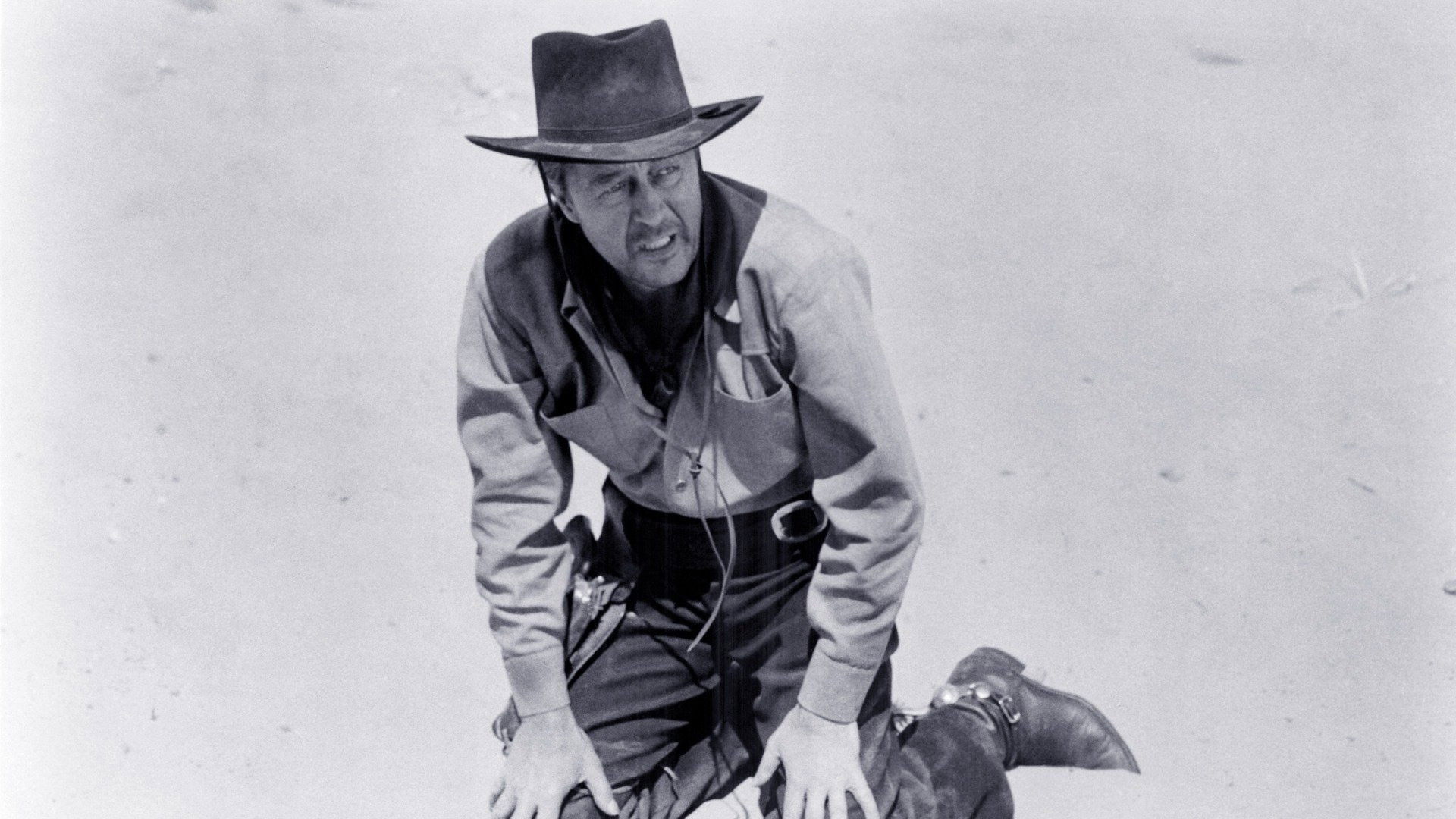 A gunfighter, stranded in the desert, comes across the aftermath of a stage robbery, in which all the passengers were killed. He takes one of the horses to ride to town to report the massacre, but finds himself accused of it. He also finds himself accused of the murder of the local banker, and winds up hiding in the basement of a house where the local sheriff, who is very sick, lives with his daughter.