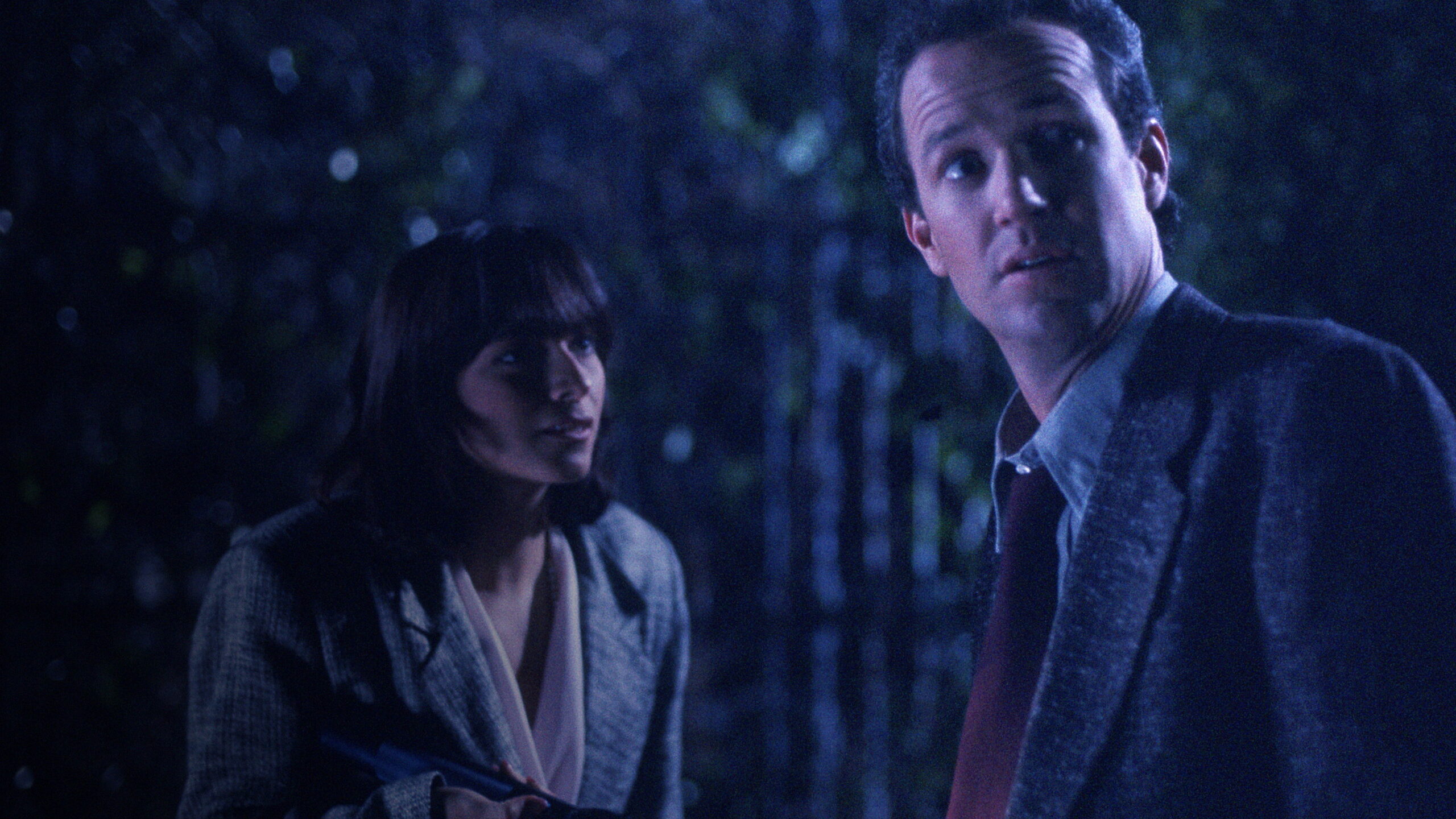 A college professor teaching a course called “The Psychology of Fear” brings his students (including a psychic) to his home, one dark and stormy night to tell scary stories. The first involves a young couple whose car breaks down by an old, abandoned house. The second has four trendy teenage girls getting lost in a bad part of town and chased by a pack of vicious dogs. Last, a woman on crutches confronting a stalker at the answering service where she works the night shift.