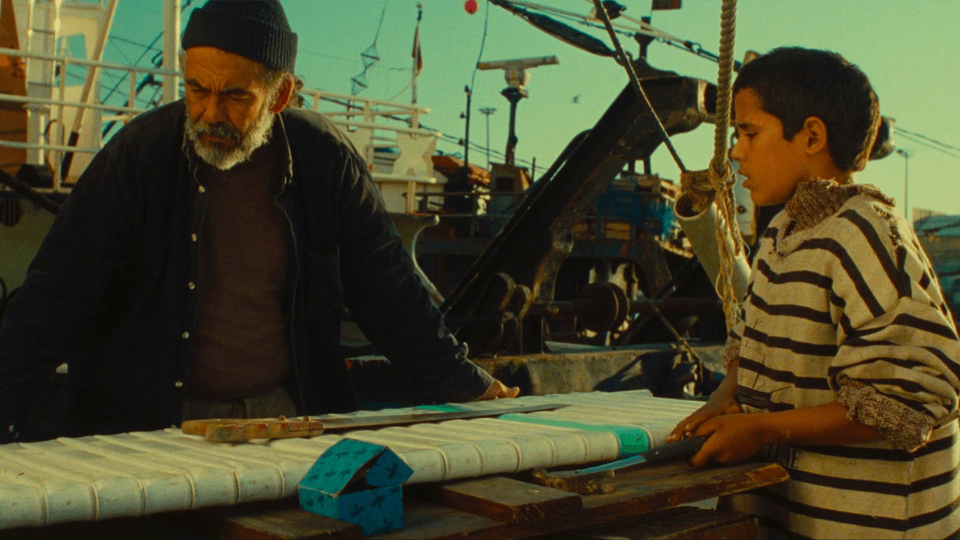 Ali, Kwita, Omar and Boubker are street kids. The daily dose of glue sniffing represents their only escape from reality. Since they left Dib and his gang, they have been living on the portside of Casablanca. They live in constant fear of Dib’s revenge. Ali wants to become a sailor – when he was living with his mother, a prostitute, he used to listen to a fairy tale about the sailor who discovered the miracle island with two suns. Instead of finding his island in the dream, Ali and his friends are confronted with Dib’s gang. Matters are getting serious.