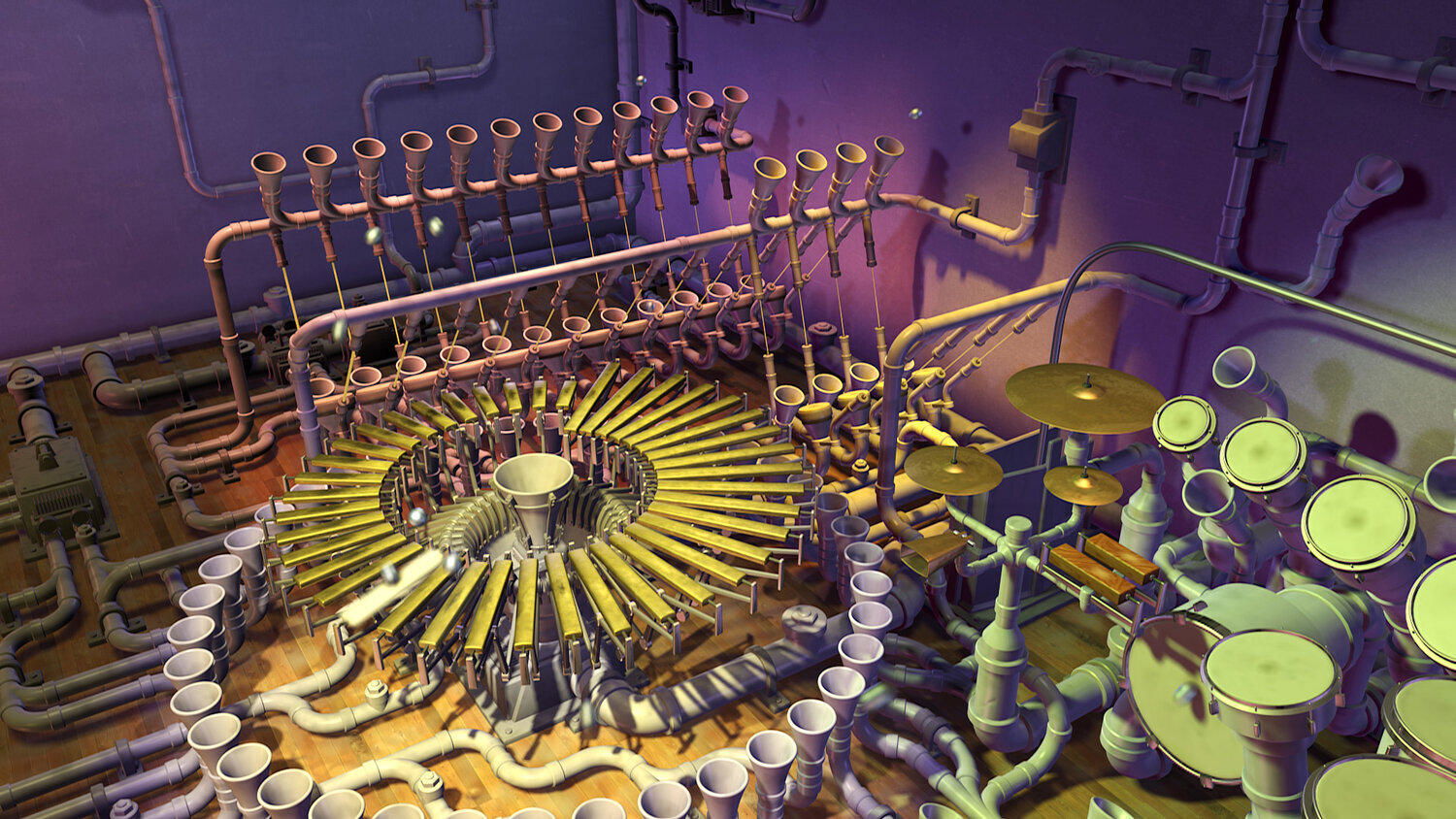Animusic draws you into its reality like no place you have ever been. You encounter new dimensions of sight and sound as you experience seven unique visual concerts. From the robotic laser-precision of Future Retro and rapid-fire ball bearings of Pipe Dream to the serene acoustic beauty of Aqua Harp, each animation is an intricate melding of music and visuals.