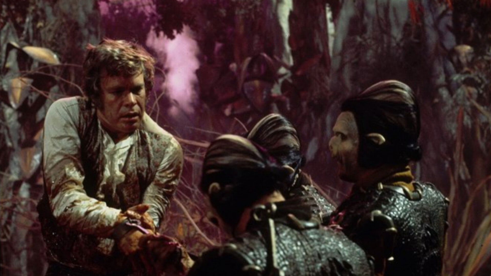 A huge burrowing machine tunnels out of control at ferocious speed, cutting clean through to the center of the earth, to the twilight world of pellucidar. Once there, Dr. Perry and David Innes are threatened by half human creatures, lizard-like birds, and man-eating plants.