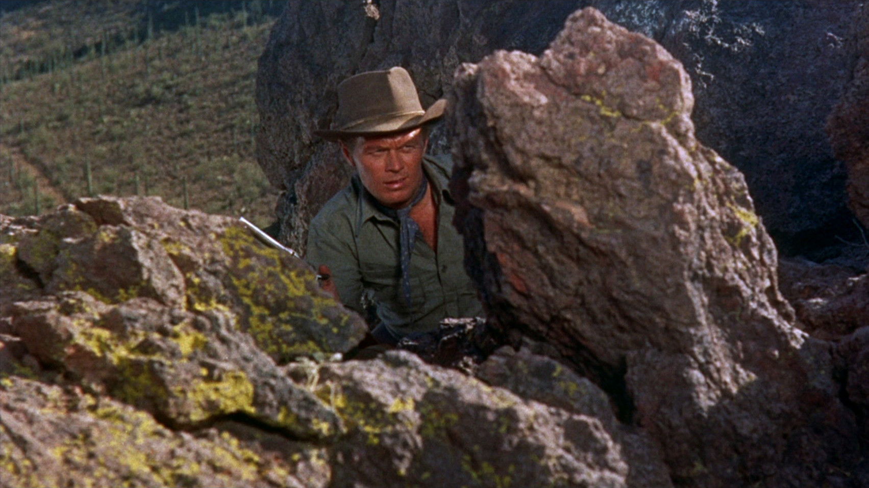 Jim Slater’s father (whom he never knew) died in the Apache ambush at Gila Valley, and Jim is searching for the one survivor, who supposedly went for help but disappeared with a lot of gold. In the process, he gets several people gunning for him, and he keeps meeting liberated woman Karyl Orton, who may be on a similar mission. Renewed Apache hostilities and an impending range war provide complications.