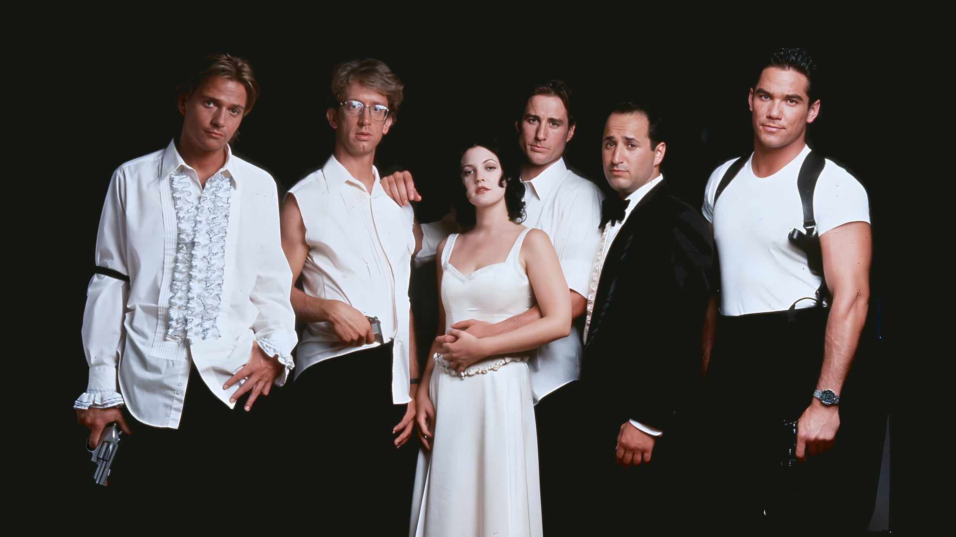 Four tuxedo clad men show up at a penitentiary to meet a friend who has just been released after three years in prison and is going straight from the jail to marry his girlfriend. En route to the wedding, one of the men asks to stop by a bank to pick up some cash. As it turns out, he is a wanted bank robber who uses Shakespeare passages during his robberies and thus has become known as “Hamlet”. Soon all five men are caught up in the bank and involved in the robbery as they end up in a hostage situation. The hostage negotiator shows up who turns out to be Hamlet’s father.