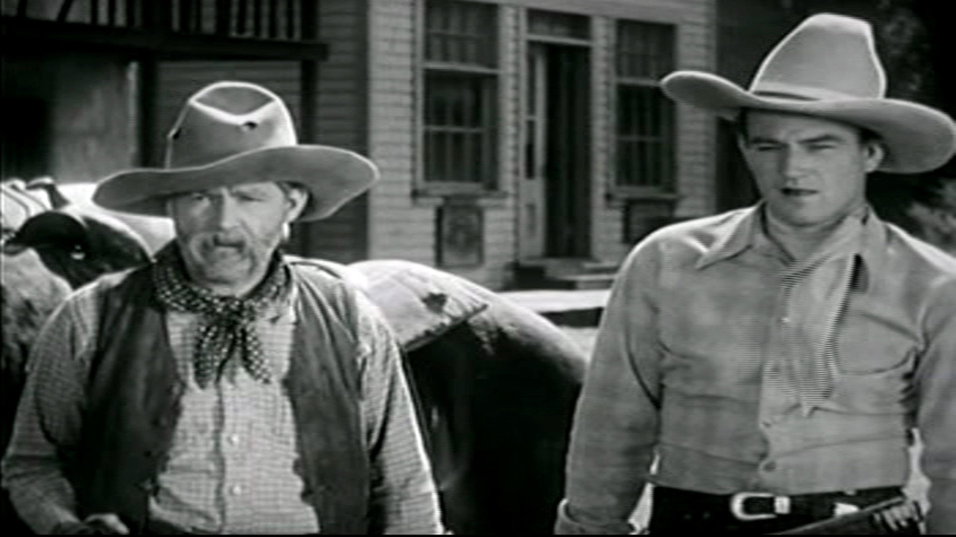 When Sheriff Jake sees a man at the safe and then finds the payroll gone, he trails him. Just as he is about to arrest him, the man saves his life. Still suspicious, he joins up with the man and later they learn that Melgrove, the towns leading citizen, is trying to take over the area’s ranches by having his gang stop all incoming supply wagons. With the ranchers about to sell to Melgrove, the two newcomers say they will bring in provisions.