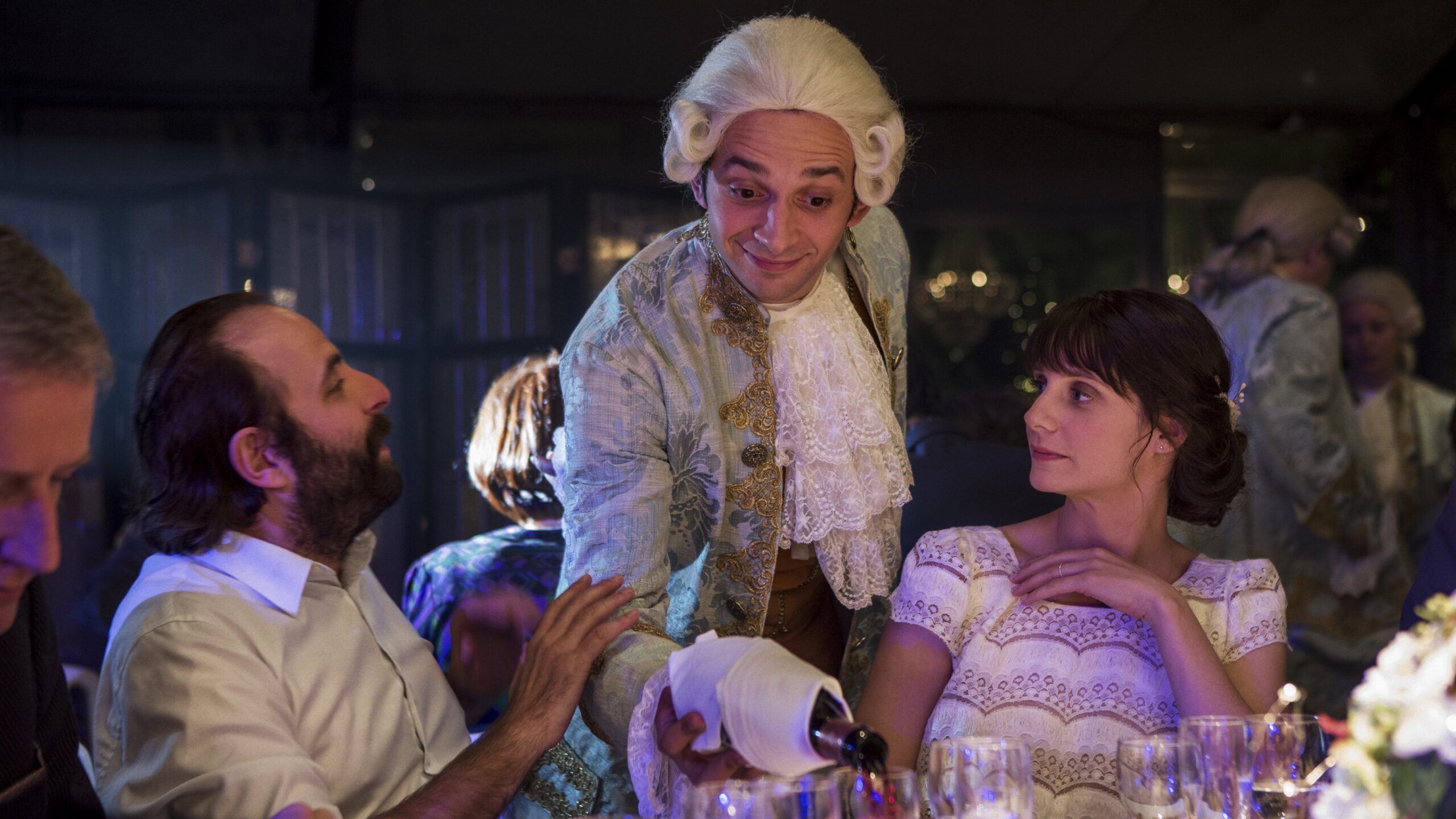 Max is a battle-weary veteran of the wedding-planning racket. His latest — and last — gig is a hell of a fête, involving stuffy period costumes for the caterers, a vain, hyper- sensitive singer who thinks he’s a Gallic James Brown, and a morose, micromanaging groom determined to make Max’s night as miserable as possible. But what makes the affair too bitter to endure is that Max’s colleague and ostensible girlfriend, Joisette, seems to have written him off, coolly going about her professional duties while openly flirting with a much younger server. It’s going to be a very long night… especially once the groom’s aerial serenade gets underway.