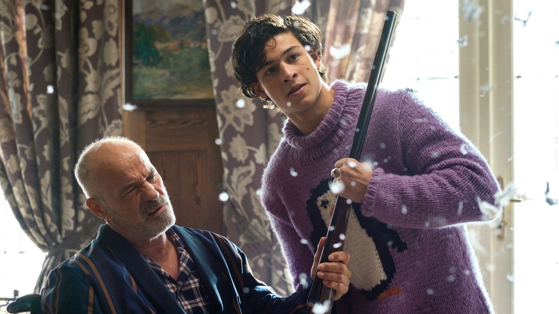 Although he actually just wanted to steal money, the crook Denis finds himself in the position of caretaking for the stroke patient Raimund. When Raimund’s granddaughter Charlotte turns up, Denis has enough of it and wants to skip. But because of an huge blizzard, escape is unimaginable.