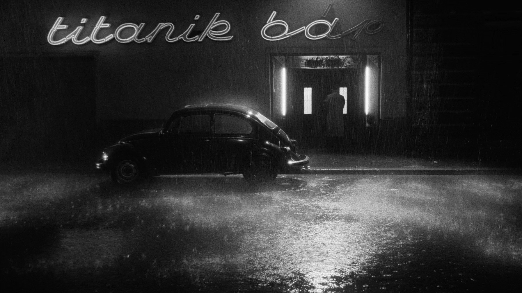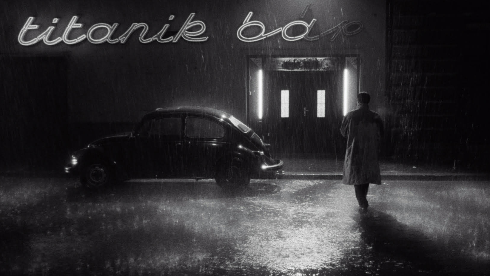 Karrer plods his way through life in quiet desperation. His environment is drab and rainy and muddy. Eaten up with solitude, his hopelessness would be incurable but for the existence of the Titanik Bar and its beautiful, haunting singer. But the lady is married and Karrer is determined to keep her husband away…