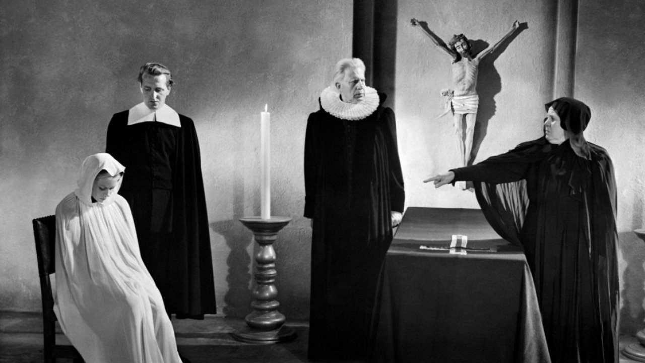 In a Danish village in the early 1600s, a young woman named Anne, whose mother was thought to be a witch, develops sympathy toward an old woman, Marte, who is accused of witchcraft. The intervention of Anne’s older but kindly husband, Pastor Absalon saved her mother — but now, urged on by his overbearing mother, he refuses to help Marte. When Absalon’s son returns home and is attracted to Anne, it’s a matter of time before her family destiny catches up with her.