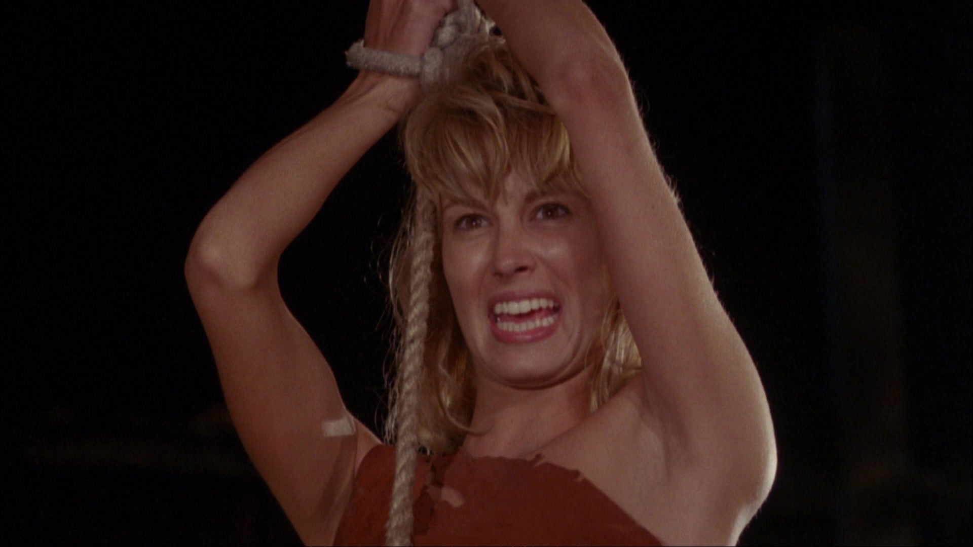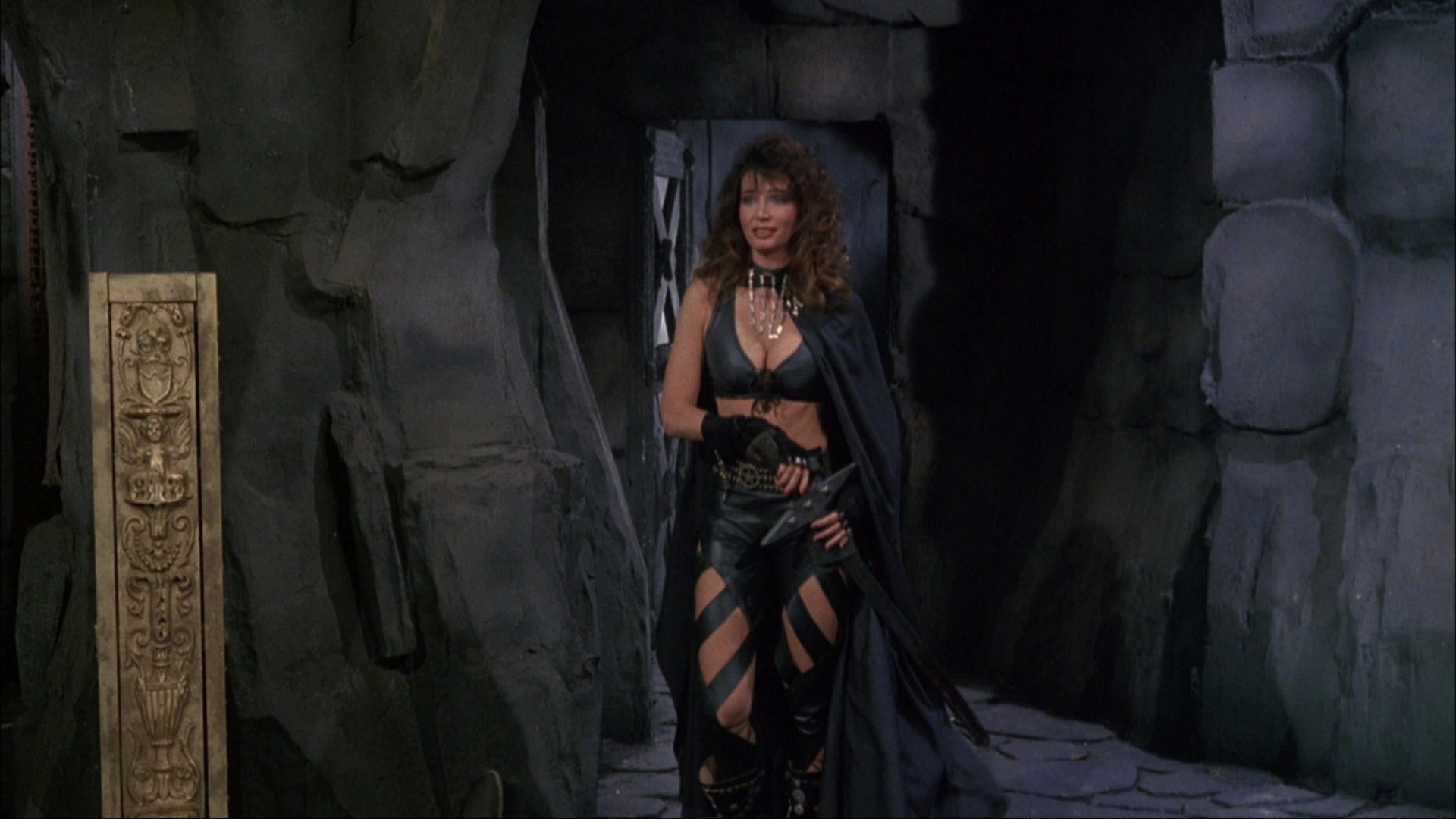 Deathstalker helps Reena the Seer out of a few jams, and she solicits his help for a bigger task. She reveals that she is actually Princess Evie, but the evil sorcerer had her abducted and cloned in order to seize control of the kingdom. Together they travel to the evil sorcerer’s stronghold to restore the princess to her rightful position, encountering challenges along the way both from the sorcerer’s goons and the fierce Amazon women.