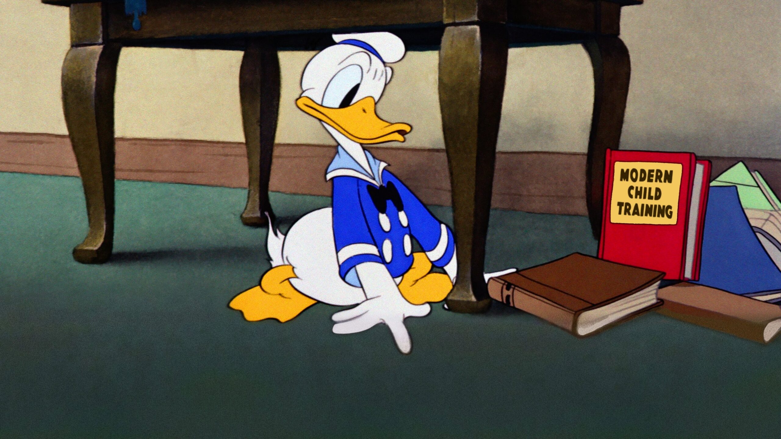 Donald’s sister Dumbella sends her three sons Huey, Dewey, and Louie to visit their uncle Donald. They prove to be quite a handful for Donald, even with help from his book on child rearing.