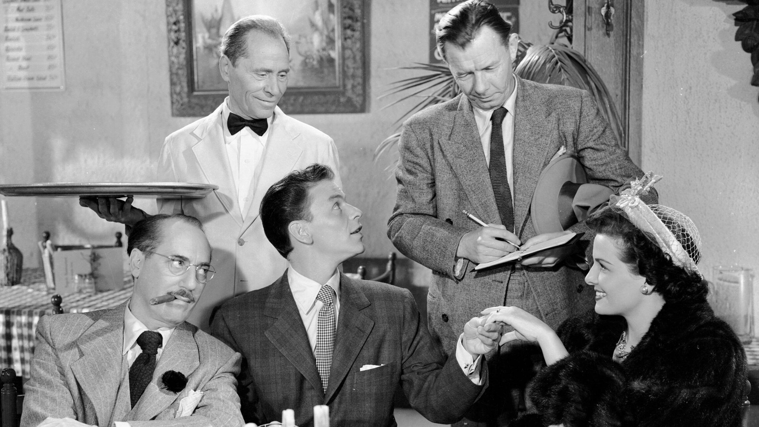 An innocent bank teller, suspected of embezzlement, is aided by an eccentric, wisecracking waiter.