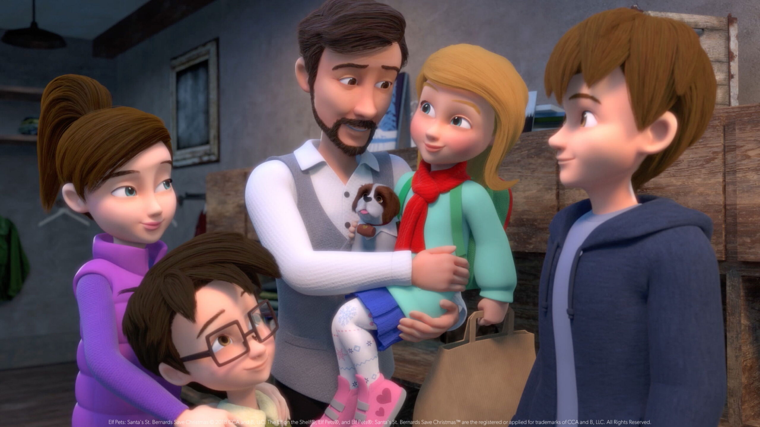What happens when an entire town forgets the true spirit of the Christmas season? It’s up to Santa and a delightful cast of North Pole characters to help them remember! In this festive Elf Pets® animated special, Santa discovers there is not enough Christmas spirit for him to make Christmas magical. Thankfully, The Elf on the Shelf® Scout Elves, Santa’s special Elf Pets® St. Bernard pups and a big-hearted family join forces to help others remember the true meaning of Christmas and ensure another successful holiday season for Santa!