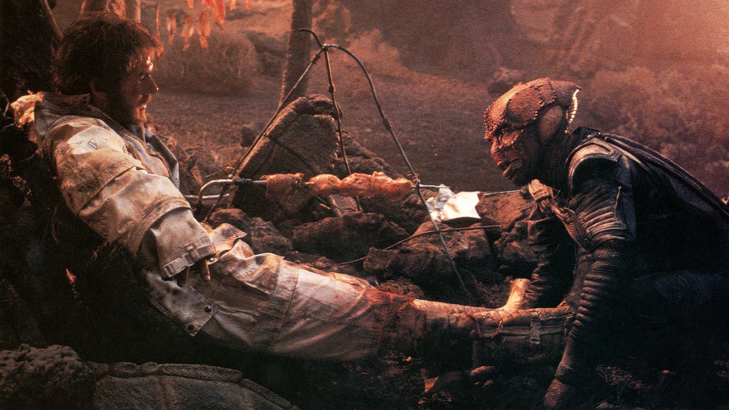 A soldier from Earth crashlands on an alien world after sustaining battle damage. Eventually he encounters another survivor, but from the enemy species he was fighting; they band together to survive on this hostile world. In the end the human finds himself caring for his enemy in a completely unexpected way.