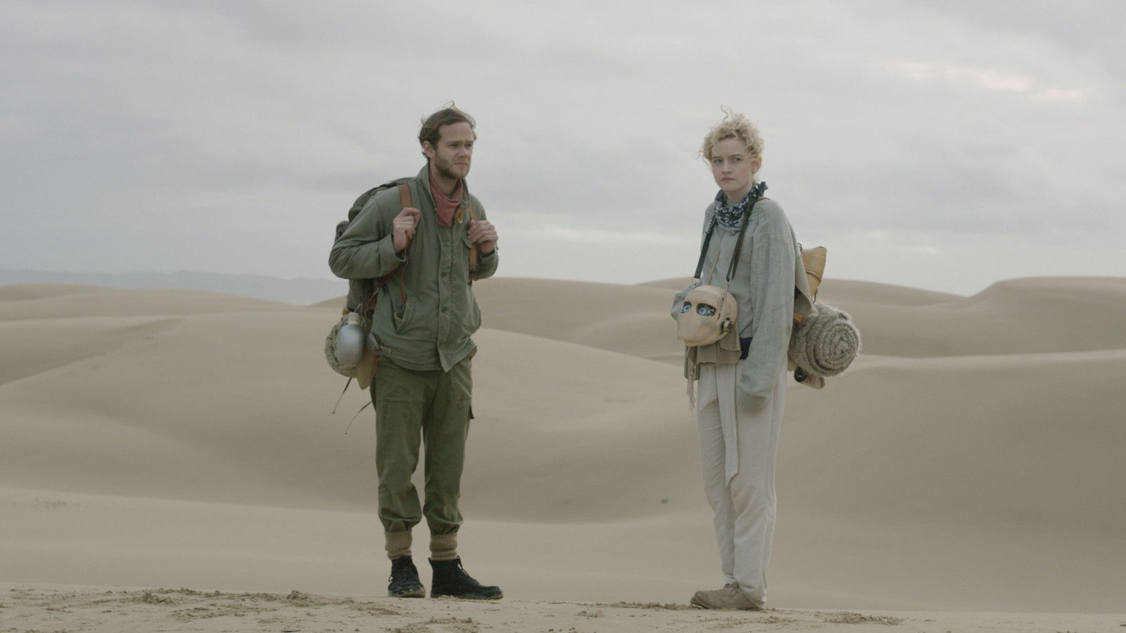 On an isolated desert planet, a man who is looking for parts to repair his robotic companion teams up with a young woman searching for an imaginary lake.
