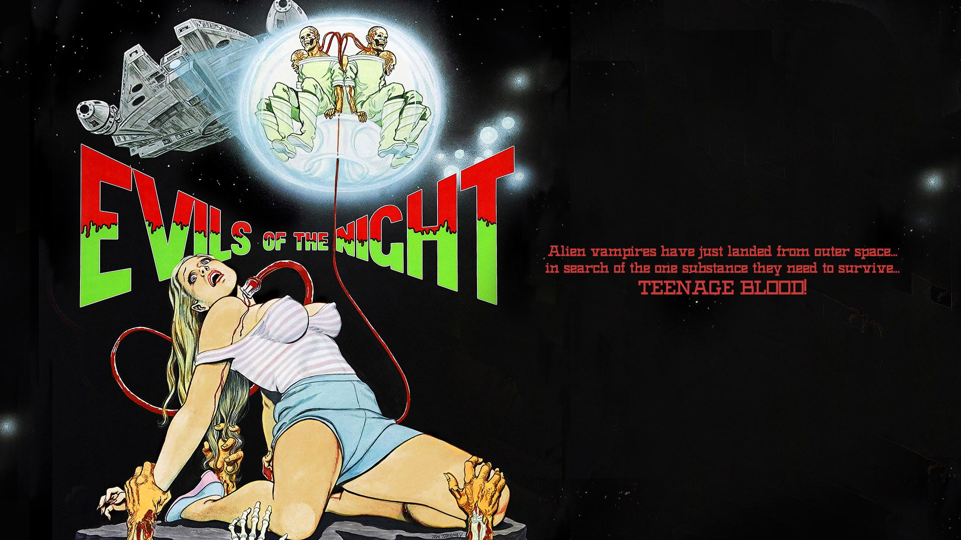 Sex-hungry teens are kidnapped by auto mechanics, who take them to a rural hospital run by aliens who need their blood as the key to their own longevity.
