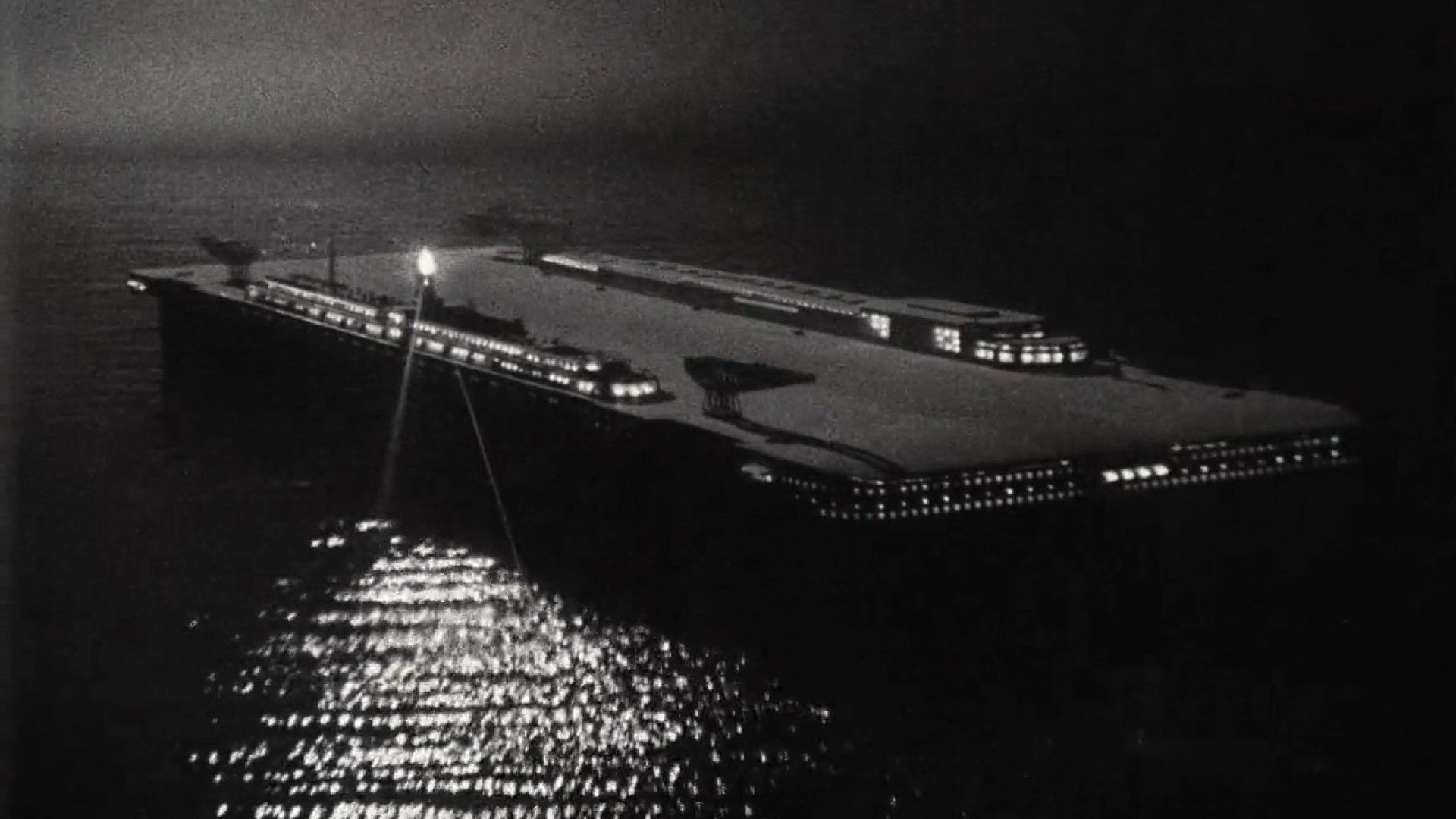 F.P.1 is a huge airplane landing dock in the Atlantic where pilots making the transatlantic flight can stop. Yet a saboteur tries to sink the technical wonder in this classic German science fiction film from 1932. The film was also created with English and French speaking actors at the same time.