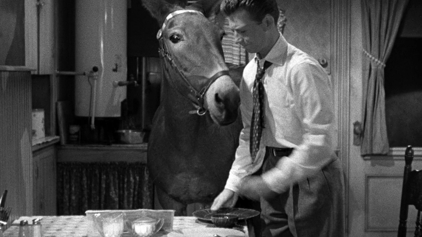 A man who has a talking mule gets a job on a newspaper, and both get mixed up in a murder trial.