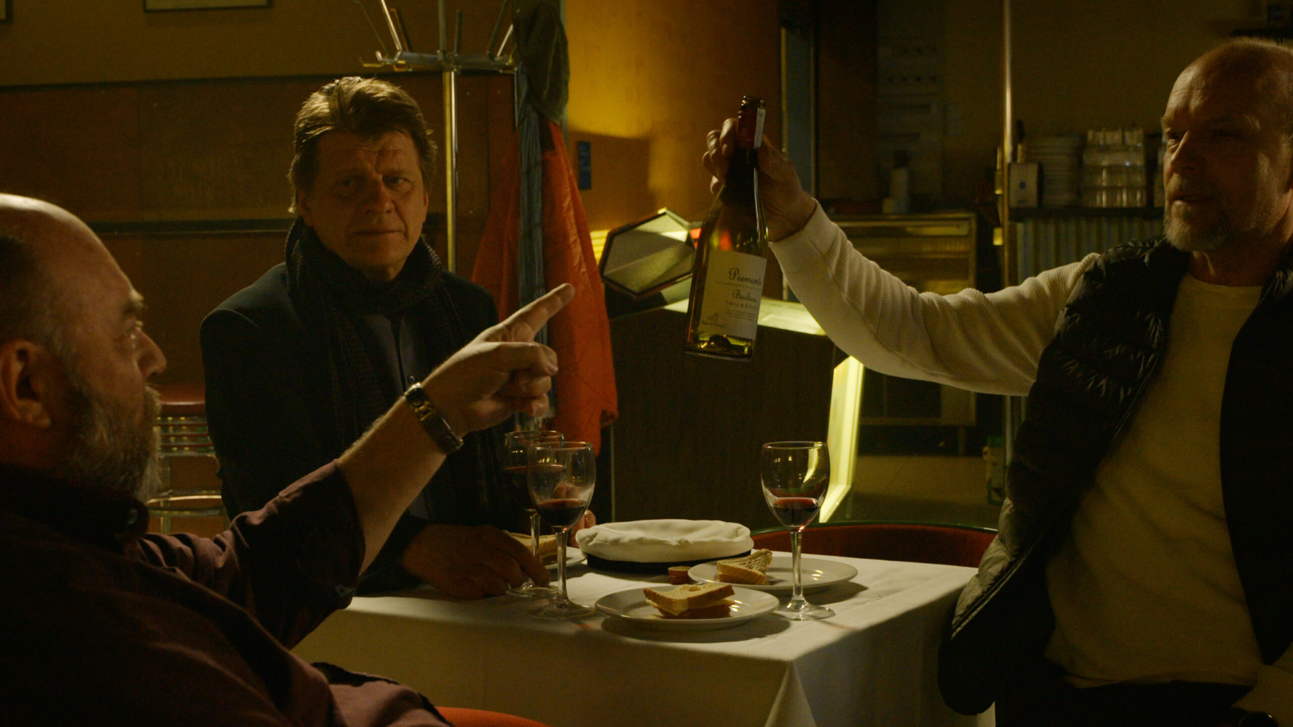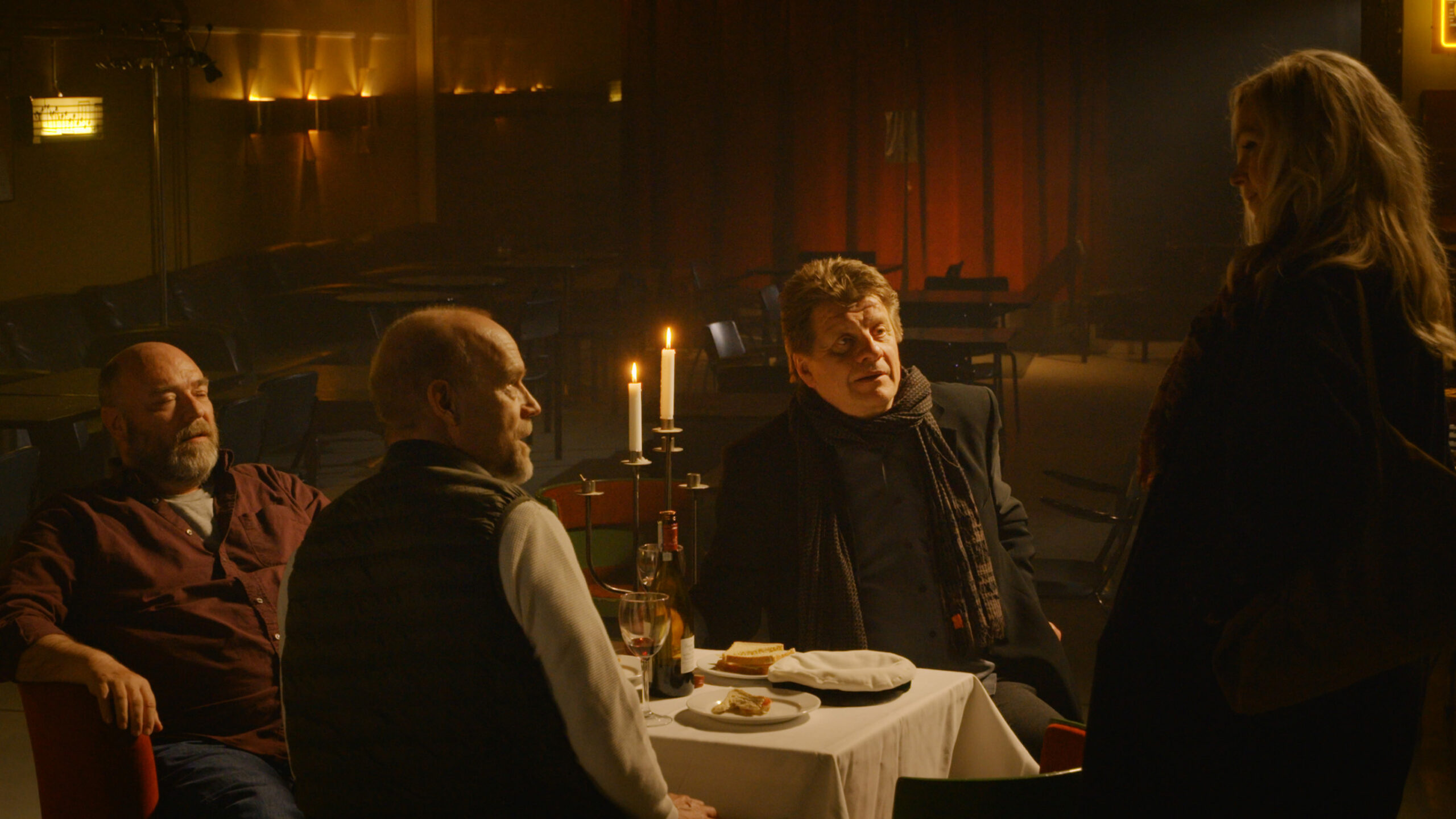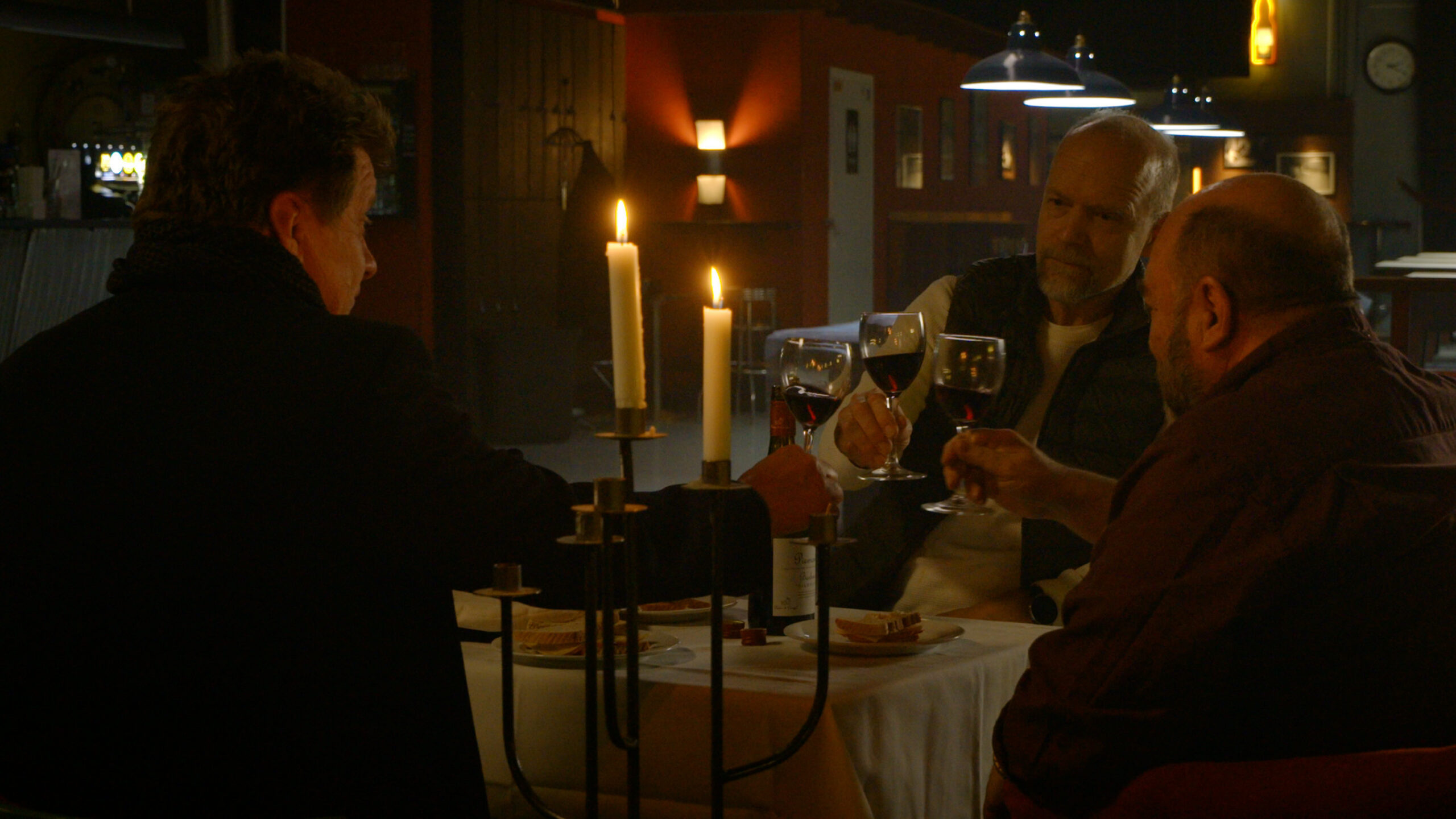 The three men enjoy the evening at a bar whose fate is threatened by pandemic restrictions. Bartender Heikki offers discussion help to his friend Risto, who works in the first line of healthcare, and who has just finished a difficult shift. The evening gets a new twist when a stranger looking for a mobile phone charger pops in and refuses to leave.