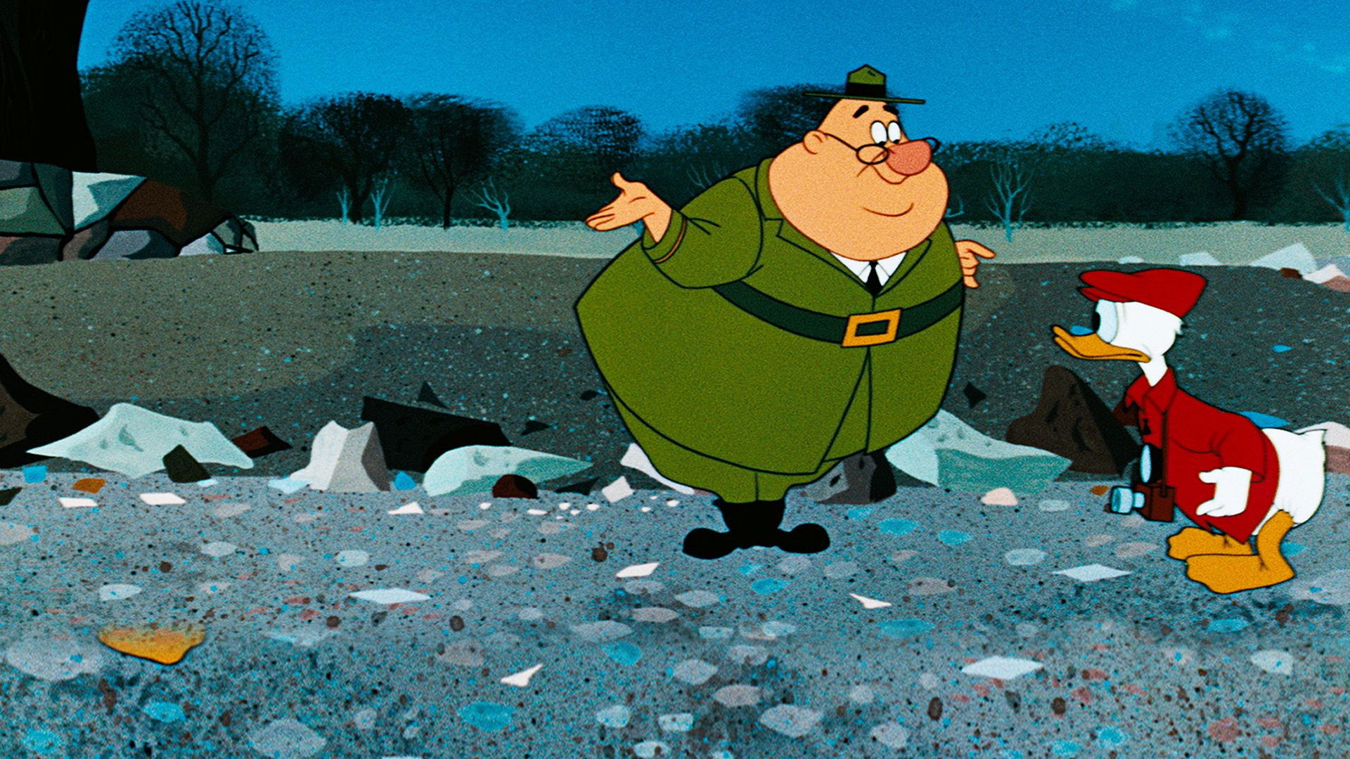 Come along with Donald Duck as he visits one of nature’s masterpieces. After a little ragtime rain dance, Donald strikes up a conversation with himself at Echo Cliff, then teeters along the edge of a precarious trail while riding a sure-footed burrow. It’s a tough job for park ranger J. Audubon Woodlore to keep Donald in check, but it gets even tougher when they run afoul of a napping mountain lion.