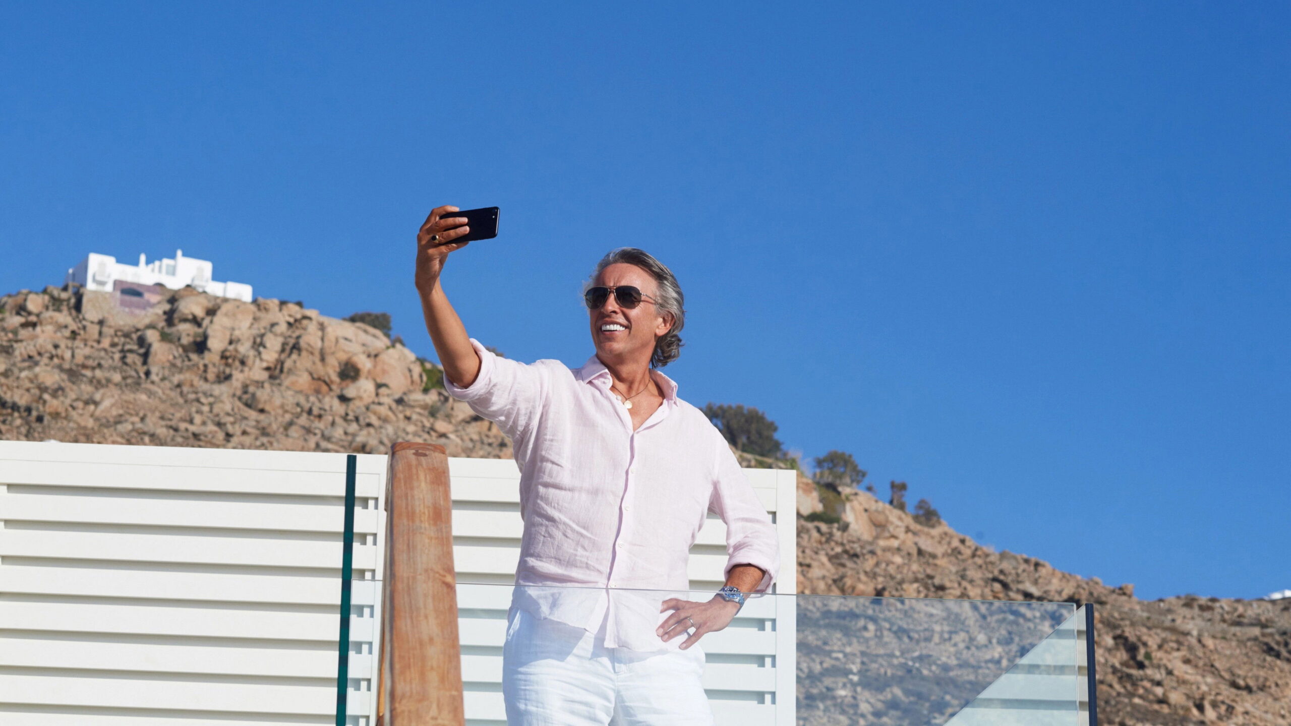 A retail billionaire’s 60th birthday party is celebrated in an exclusive hotel on the Greek island of Mykonos.