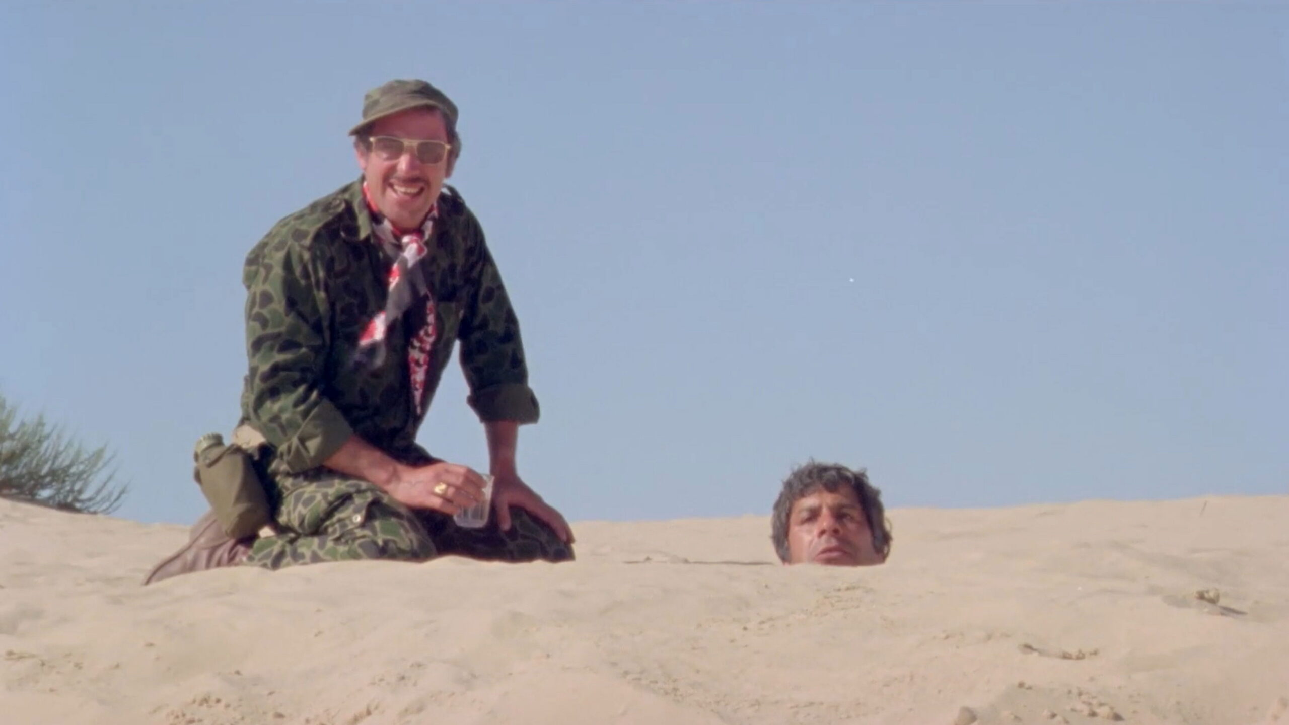 Sergio Konstanza, a swindler, owes money to Mr. Hasson. He escapes to the desert where he joins a wacky army reserve unit whose Sergeant is engaged to one of Mr. Hasson’s Daughters.