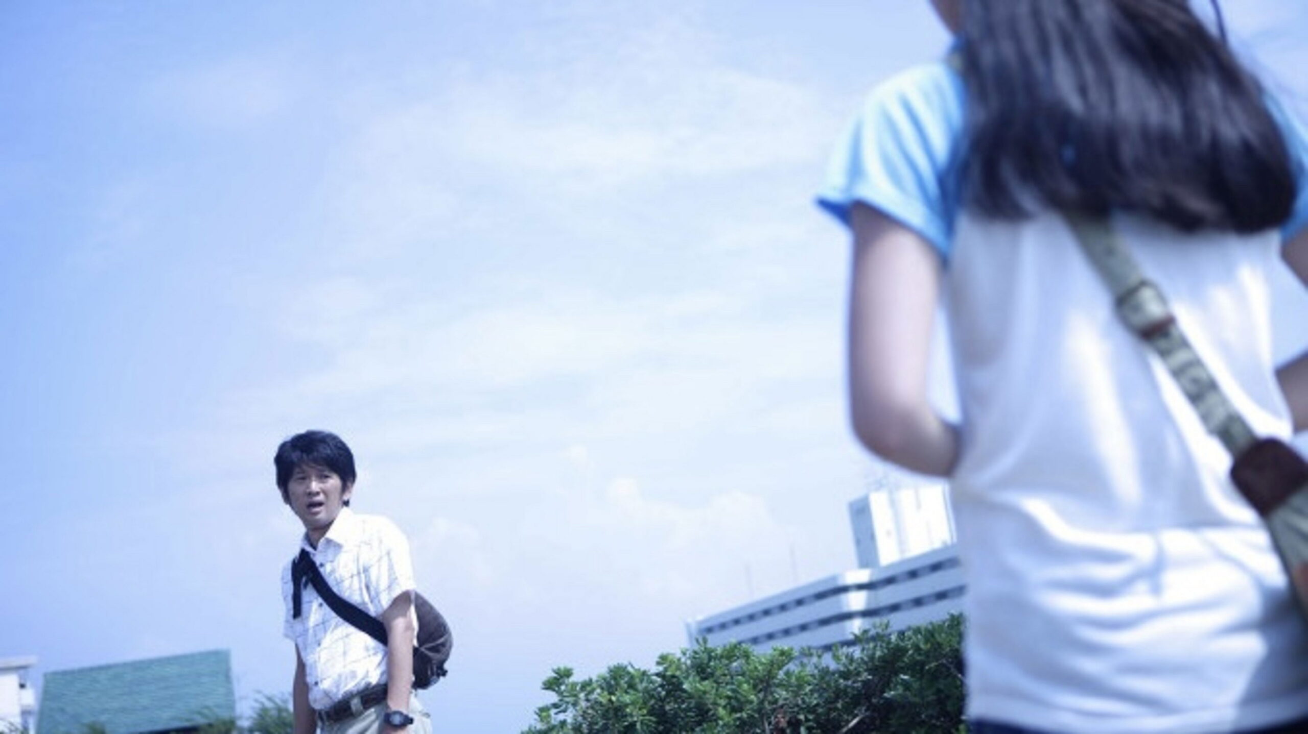 A young girl named Sato watches on television as a man named Tomoki states brazenly at a press conference that he hopes convicted murderer Mitsuo is eventually placed back into society so that he can kill him with his bare hands.