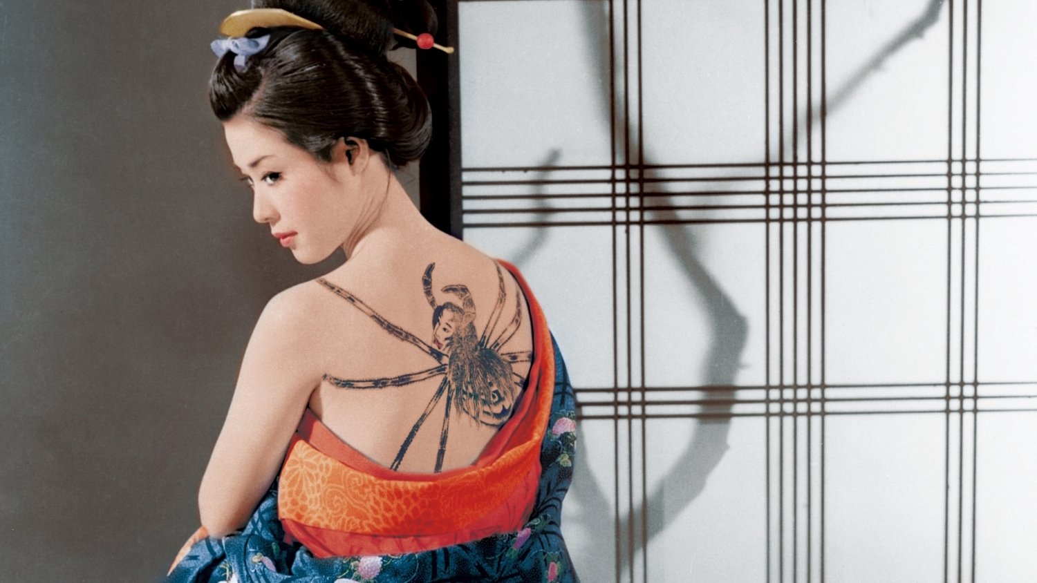 Otsuya, the daughter of a rich merchant, elopes with her lover Shinsuke, an employee of her father’s. During their flight, Otsuya’s beauty attracts the gaze of Seikichi, a mysterious master tattooist who sees her pristine white skin as the perfect canvas for his art. The image of the large demonic spider that he emblazons across Otsuya’s back marks her as the property of another man, radically altering her relationships with all around her as her personality seems to transform under its influence.