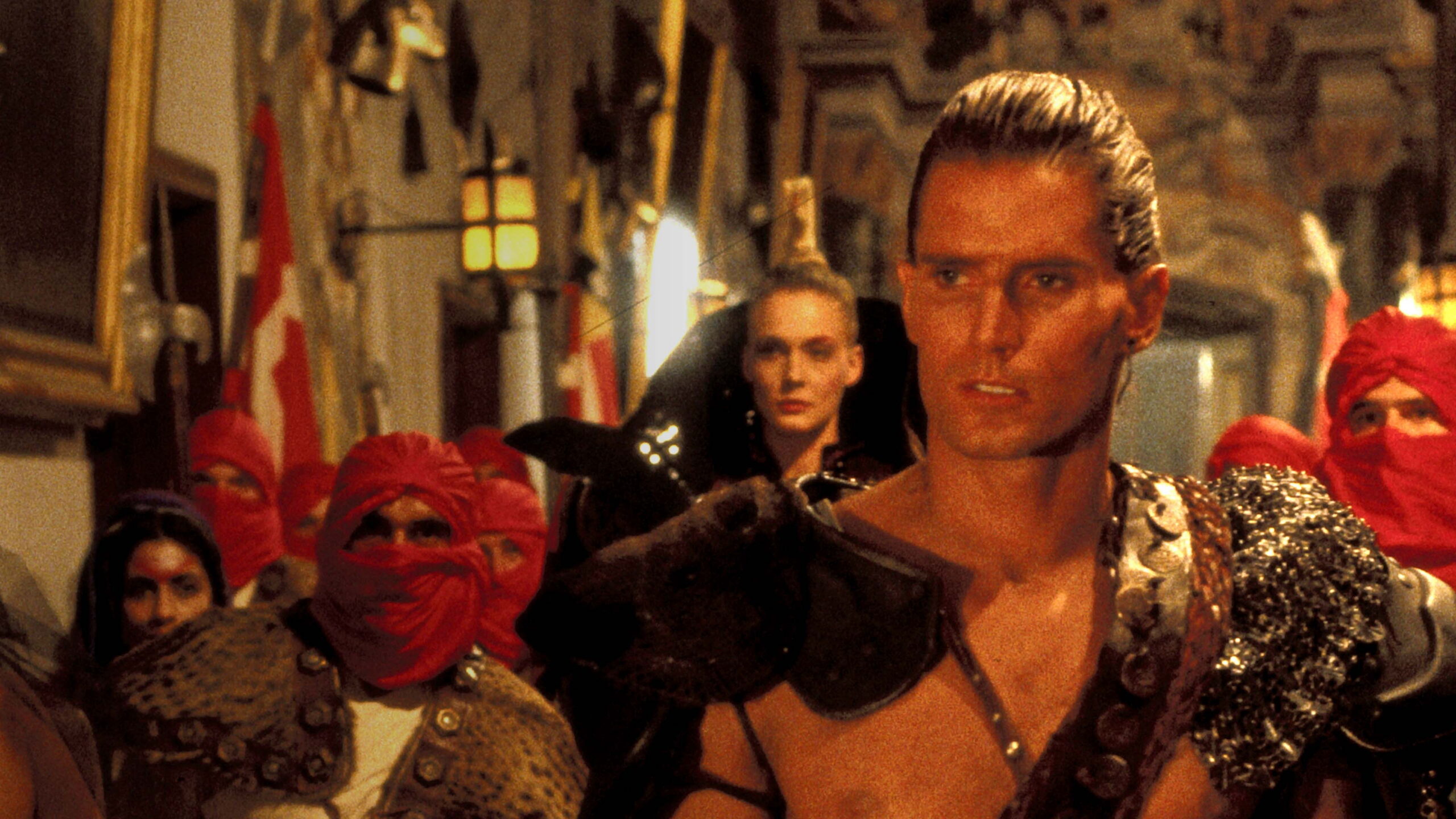 The Fighting Eagle returns again, sans Thong, to the legendary realm of Dragor to do battle with Phaedra, an evil sorceress. Her main weapon is an unstoppable warrior, known as the Master of the Sword, who continuously battles Ator to a draw, until finally revealing his secret connection to the Blademaster.