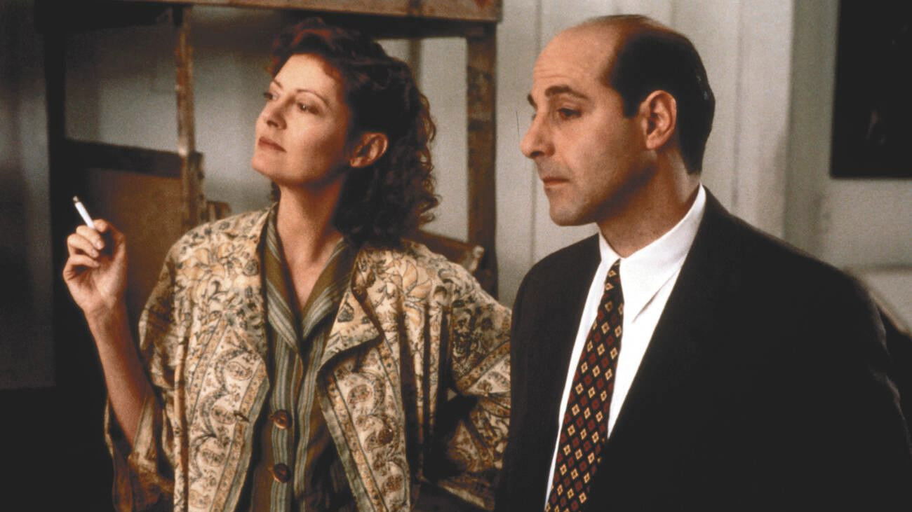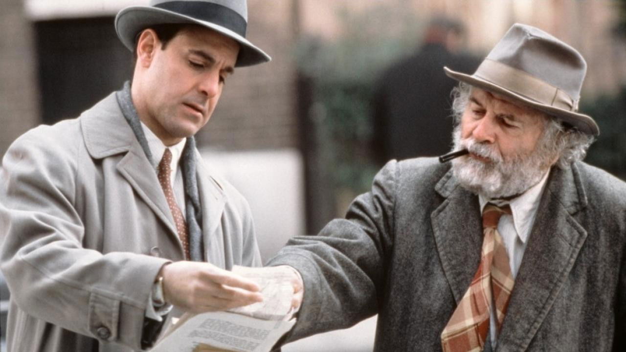 Around 1940, New Yorker staff writer Joe Mitchell meets Joe Gould, a Greenwich Village character who cadges meals, drinks, and contributions to the Joe Gould Fund and who is writing a voluminous Oral History of the World, a record of 20,000 conversations he’s overheard. Mitchell is fascinated with this Harvard grad and writes a 1942 piece about him, “Professor Seagull,” bringing Gould some celebrity and an invitation to join the Greenwich Village Ravens, a poetry club he’s often crashed. Gould’s touchy, querulous personality and his frequent dropping in on Mitchell for hours of chat lead to a breakup, but the two Joes stay in touch until Gould’s death and Mitchell’s unveiling of the secret.