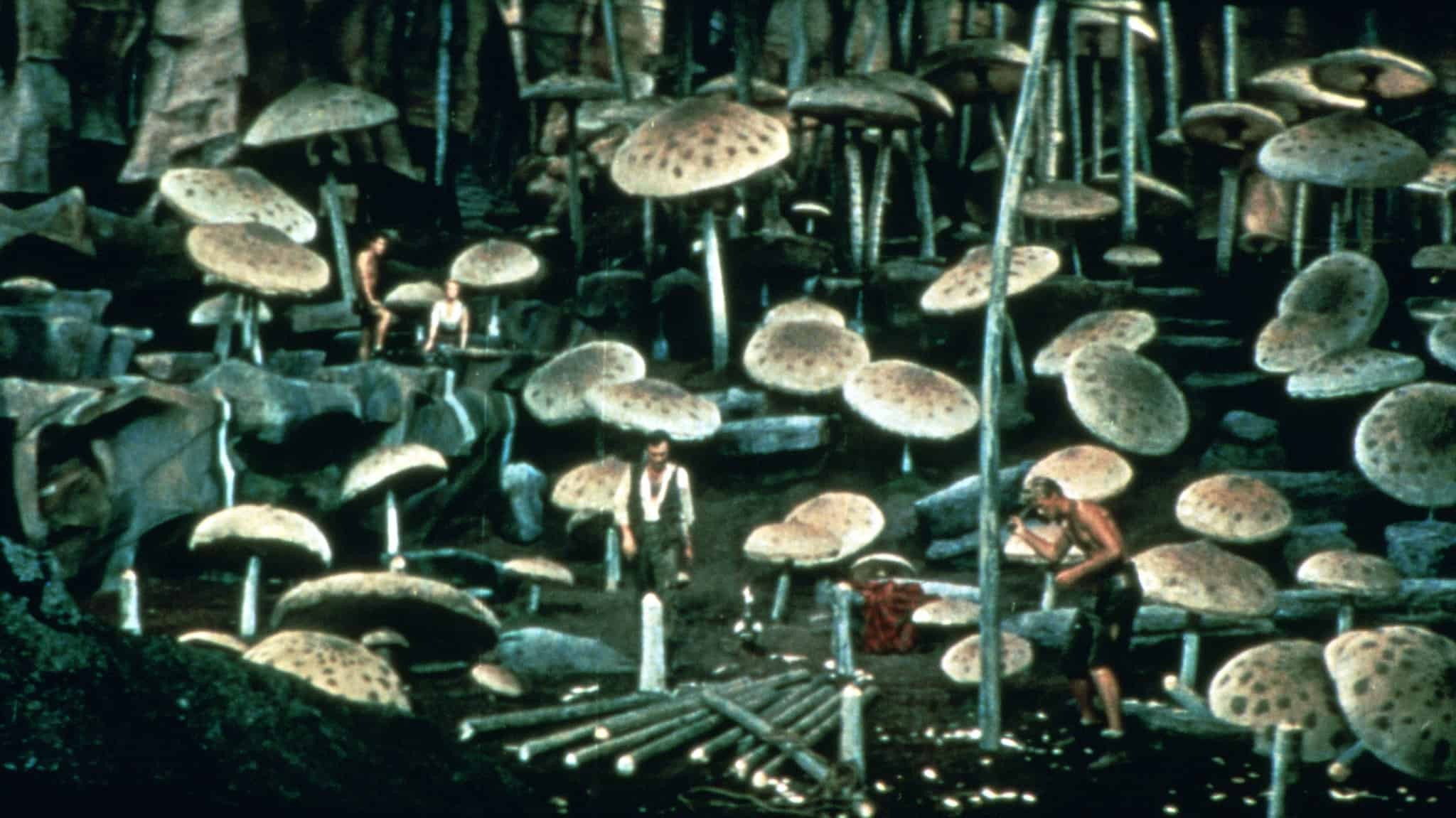 An Edinburgh professor and assorted colleagues follow an explorer’s trail down an extinct Icelandic volcano to the earth’s center.