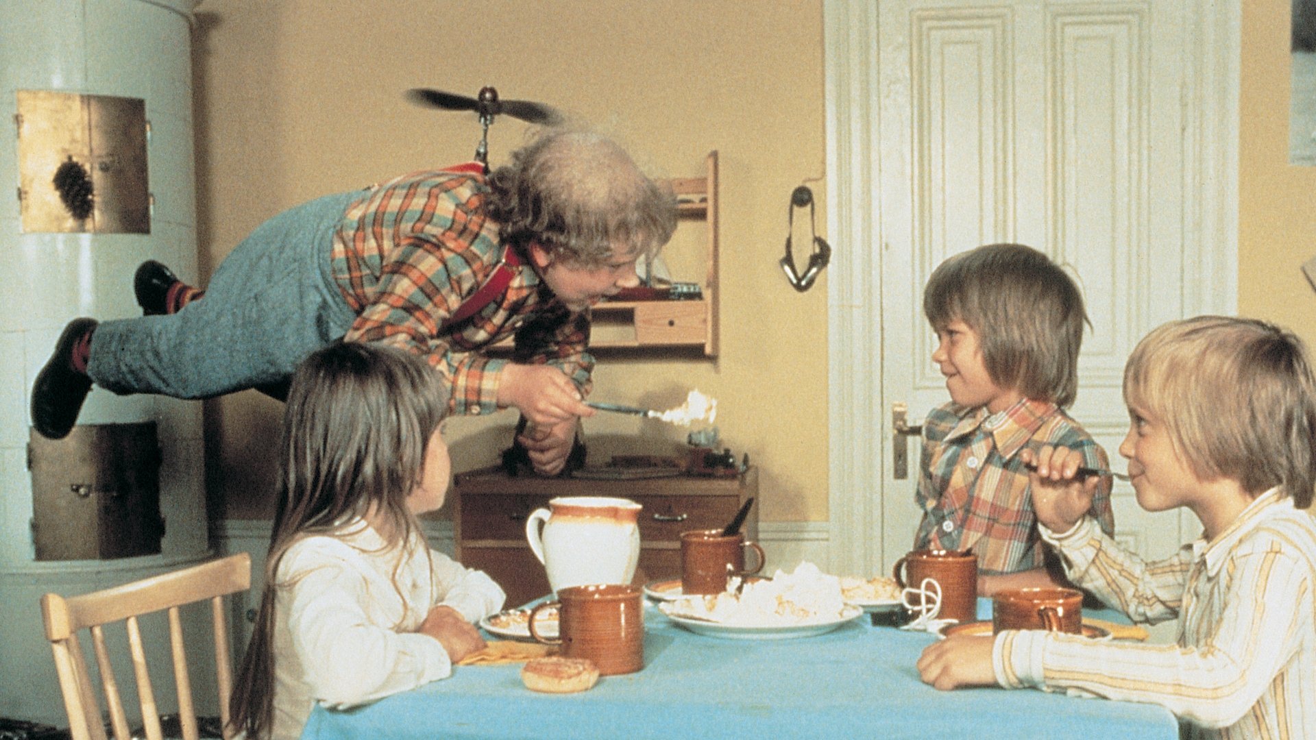 Svante is a young boy who lives with his family in a Stockholm apartment. One day he meets Karlsson, a chubby little man in the prime of his life, who can fly using a propeller on his back and who lives in his little house on the roof.