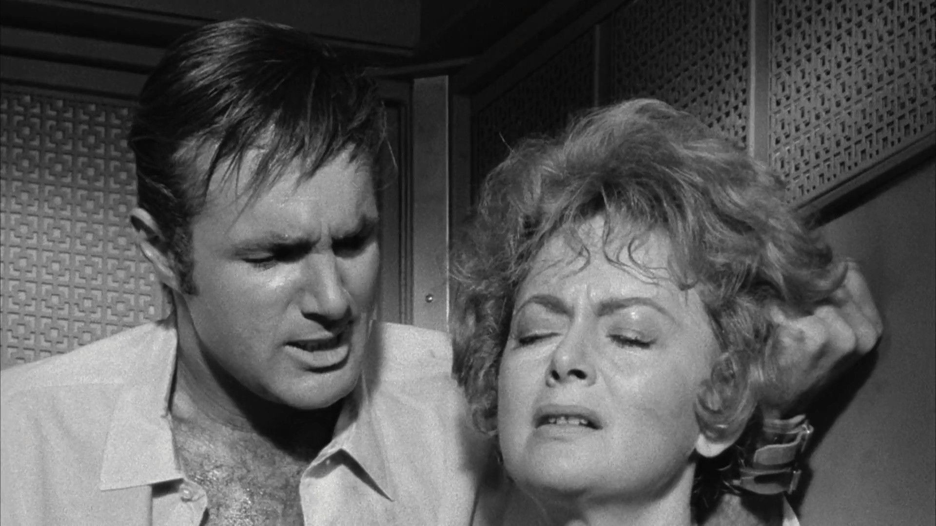 A woman trapped in a home elevator is terrorized by a group of vicious hoodlums.