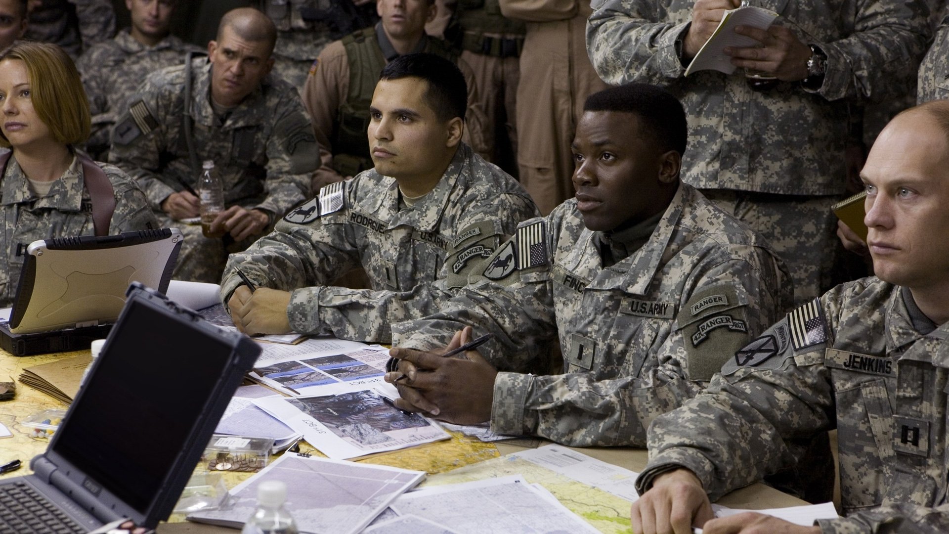 Three stories told simultaneously in ninety minutes of real time: a Republican Senator who’s a presidential hopeful gives an hour-long interview to a skeptical television reporter, detailing a strategy for victory in Afghanistan; two special forces ambushed on an Afghani ridge await rescue as Taliban forces close in; a poli-sci professor at a California college invites a student to re-engage.