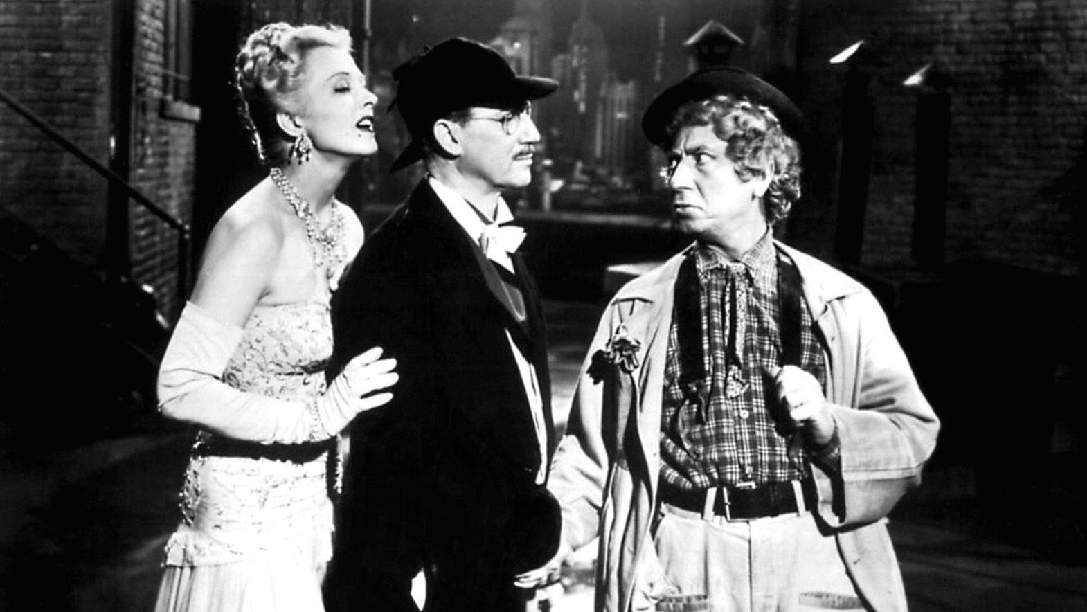 The Marx Brothers help young Broadway hopefuls when they get mixed up with gangsters due to a tin of sardines containing Romanoff diamonds.