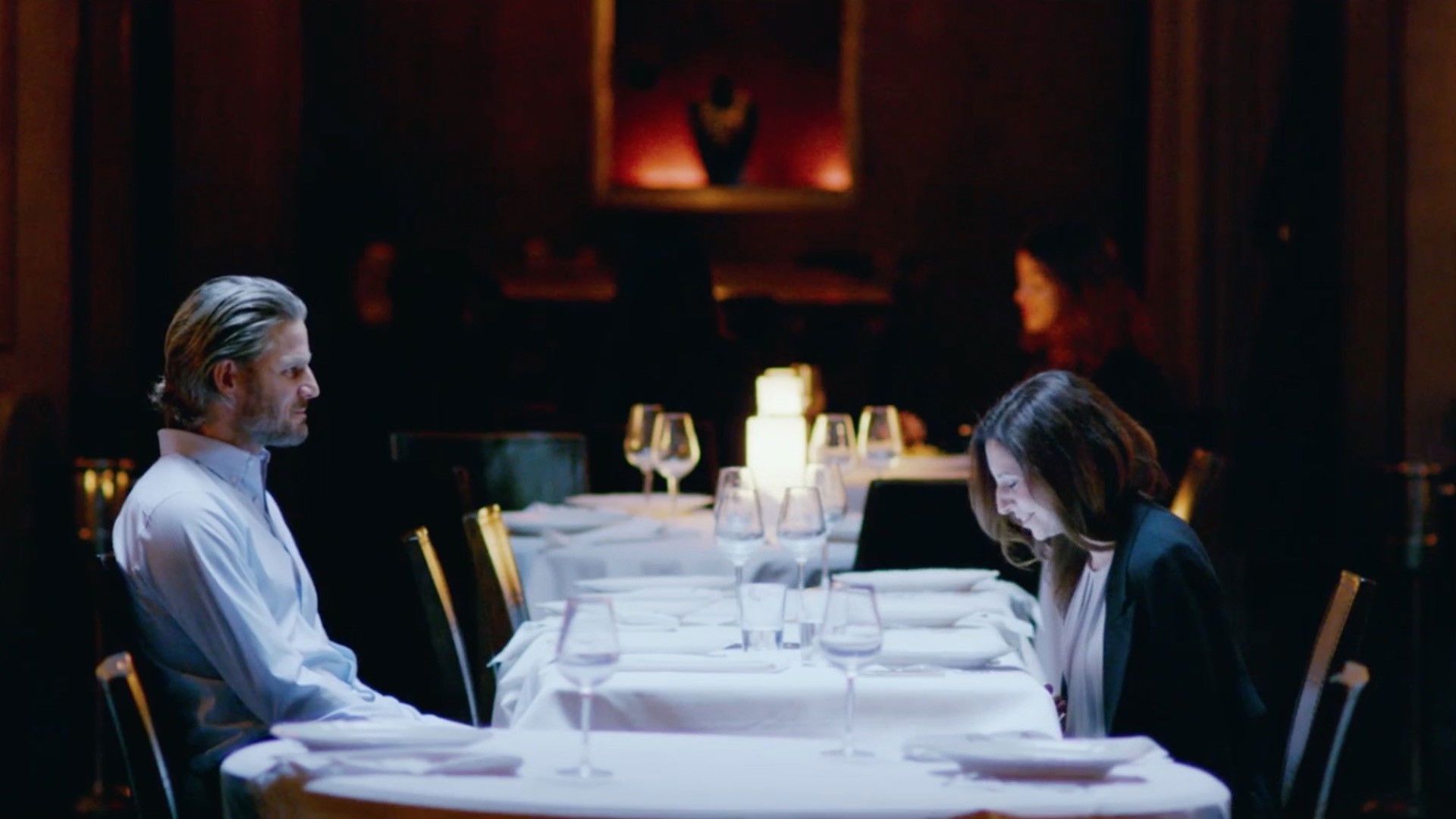 Him and her. A husband and a wife staying in a cozy hotel where you can come for just a couple of days with a risk to get stuck forever. It is so easy to get trapped in the daily routine. Indeed, nothing is more permanent than the temporary. Their time is like a flat circle. He has his phone calls and business meetings. She is wrapped in her dreams and doubts. All reactions are predictable, all conversations are learnt by heart. An endless LP record of life keeps playing again and again repeating itself. But a few things can break this tune, like a scratch on the record, a crack on a wine glass, a sudden glance or a meeting with a stranger. And then you know: tomorrow will come soon. Any moment something can go wrong, throw you off course, and force you to make a choice.