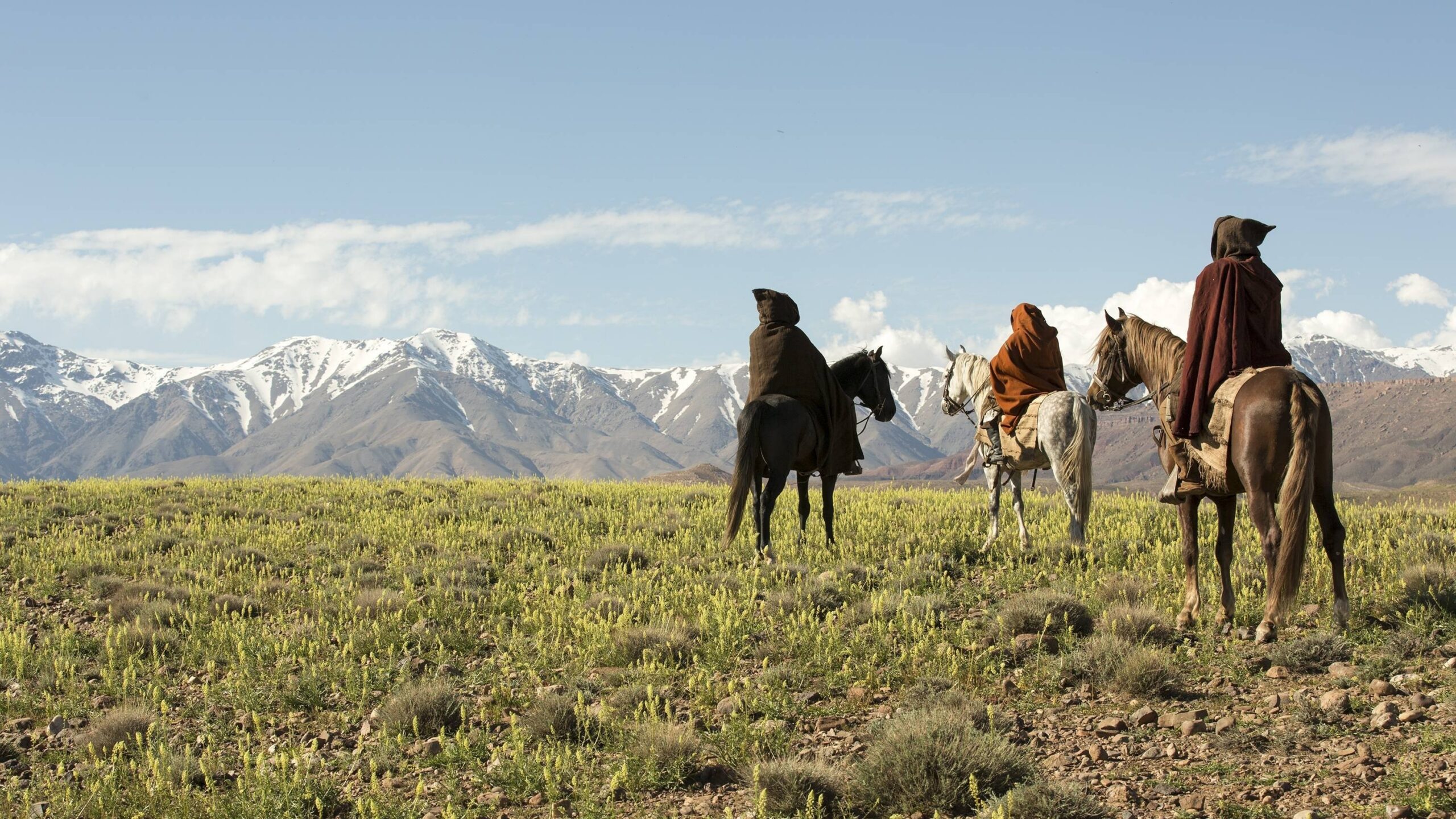 A dying Sheikh travels across the Moroccan Atlas in a caravan escorted by two rogues.