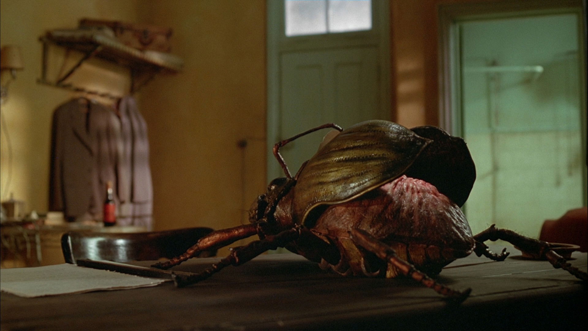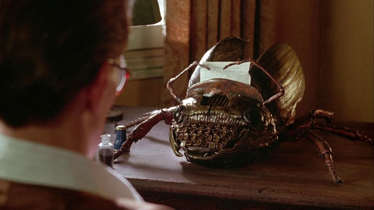 Blank-faced bug killer Bill Lee and his dead-eyed wife, Joan, like to get high on Bill’s pest poisons while lounging with Beat poet pals. After meeting the devilish Dr. Benway, Bill gets a drug made from a centipede. Upon indulging, he accidentally kills Joan, takes orders from his typewriter-turned-cockroach, ends up in a constantly mutating Mediterranean city and learns that his hip friends have published his work — which he doesn’t remember writing.