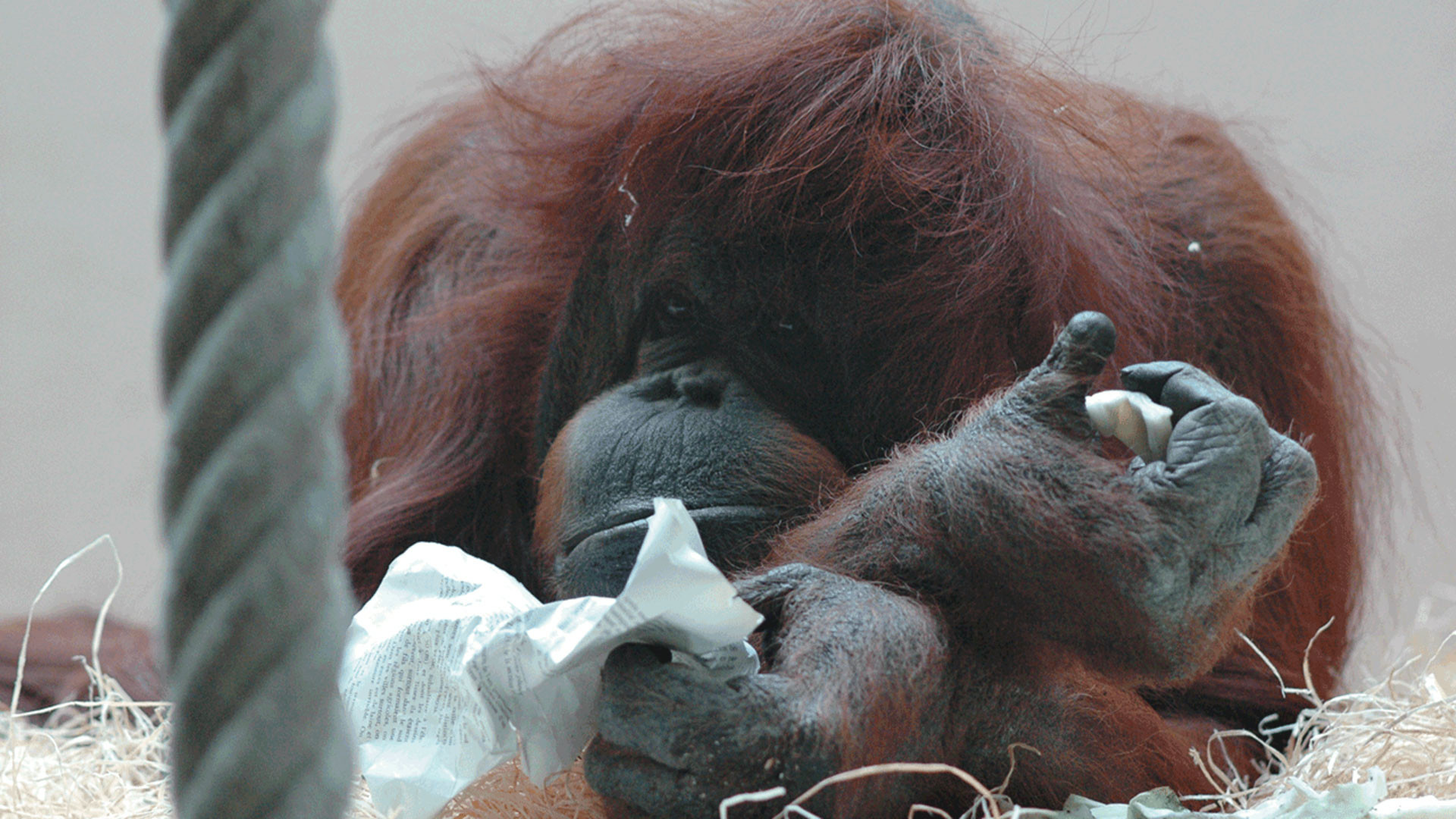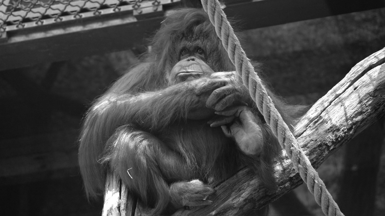 Nénette, an orangutan, is the star of the Parisian zoo where she has lived most of her long life. She is a mother of four and has survived three mates, and she bonds only with a few select keepers. The camera rests throughout on Nénette and the other apes in everyday situations. We only see the visitors as occasional reflections in the glass, but we hear their recorded comments and conversations alongside interviews with the zoo keepers.