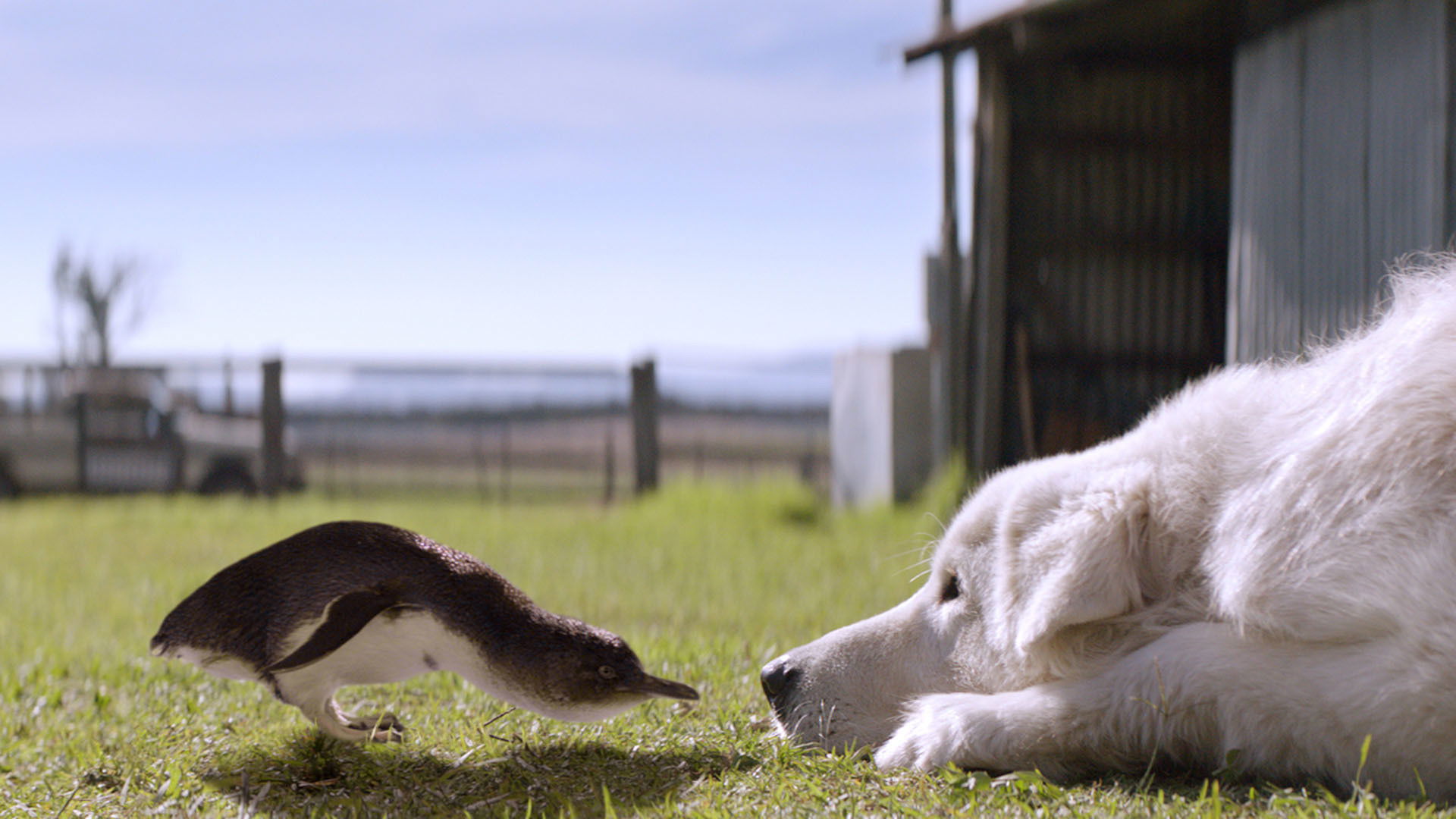 An eccentric chicken farmer, with the help of his granddaughter, trains his mischievous dog Oddball to protect a penguin sanctuary from fox attacks in an attempt to reunite his family and save their seaside town.