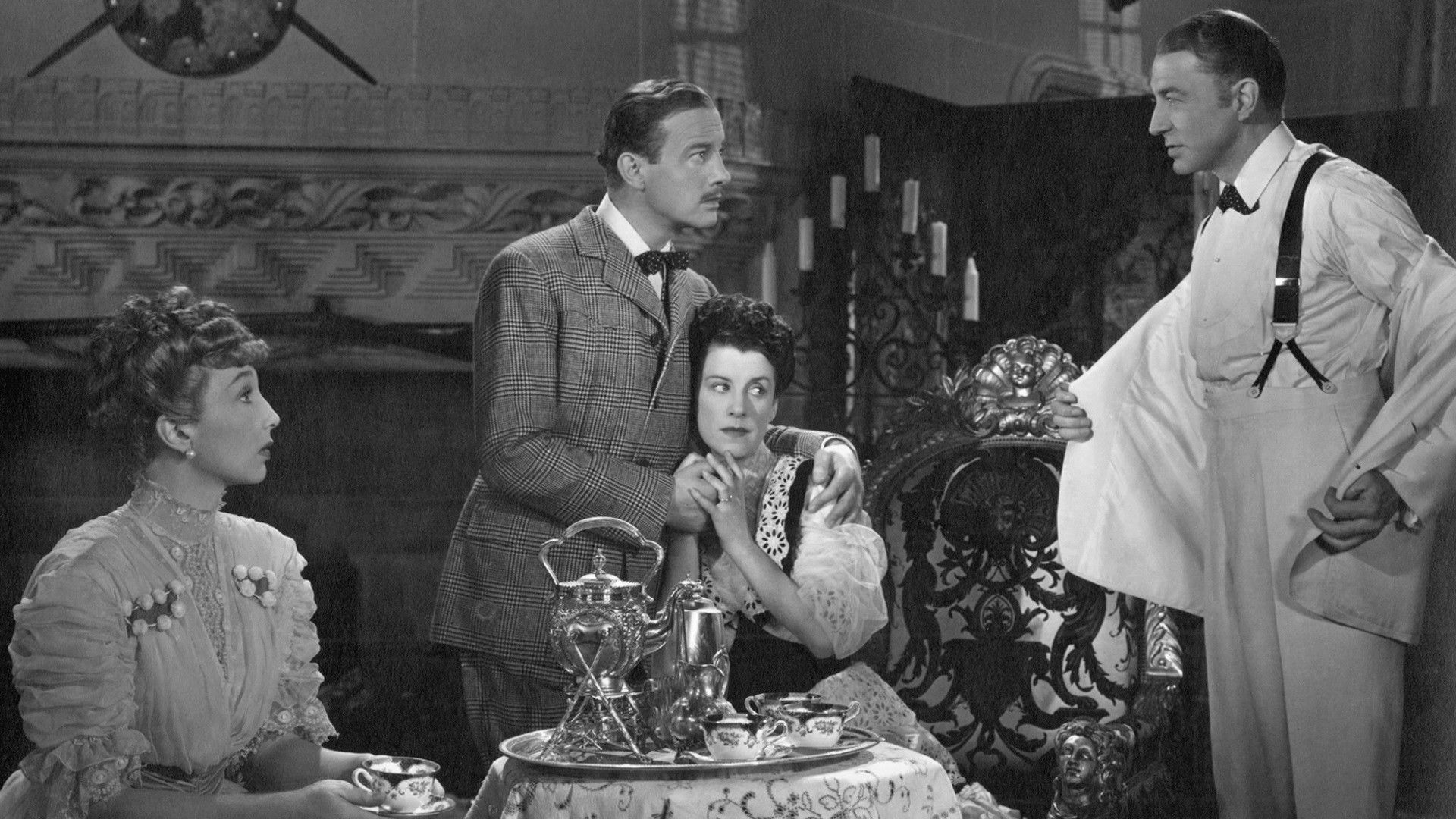 Two wealthy Victorian widows are courted tentatively by two impoverished British aristocrats. When one of the dowagers suggests that her beau go away with her for a month to see if they are compatible, the fireworks begin.