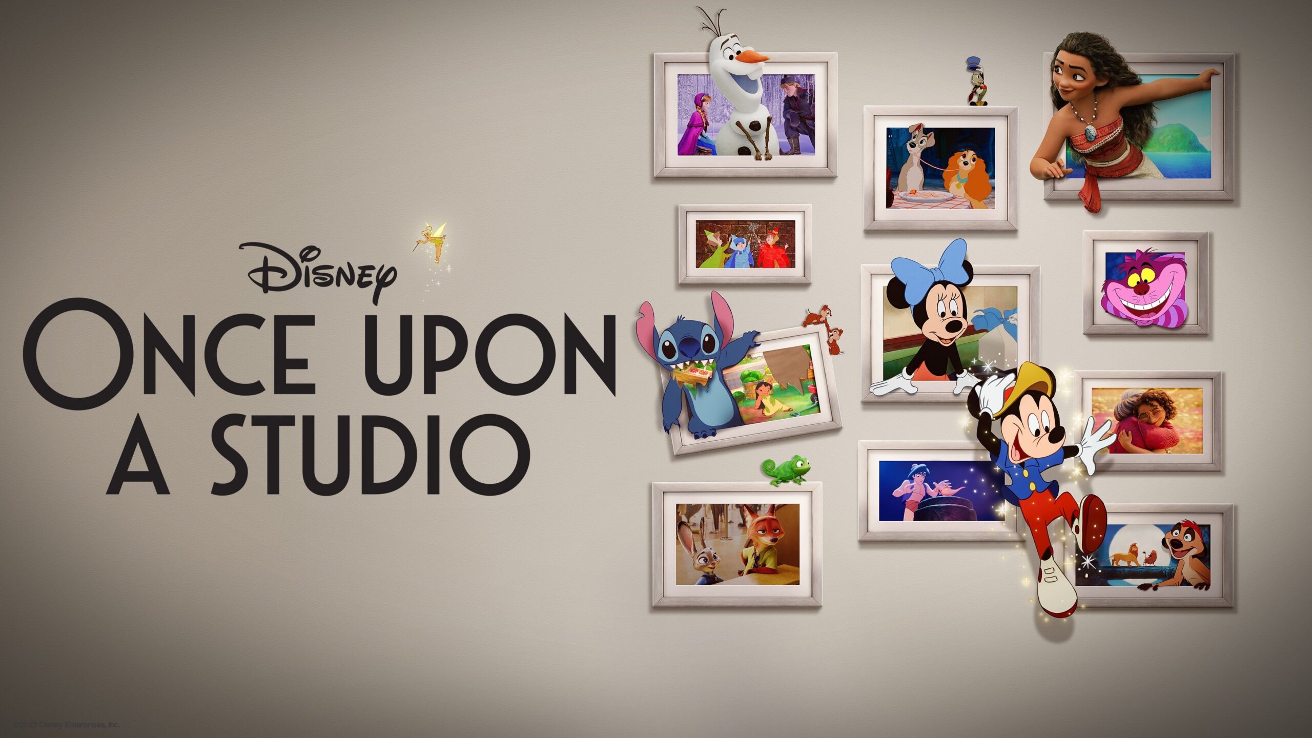 Created for Disney’s 100th anniversary, the short features Mickey Mouse corralling a gallery of legendary Disney characters for a group photo.