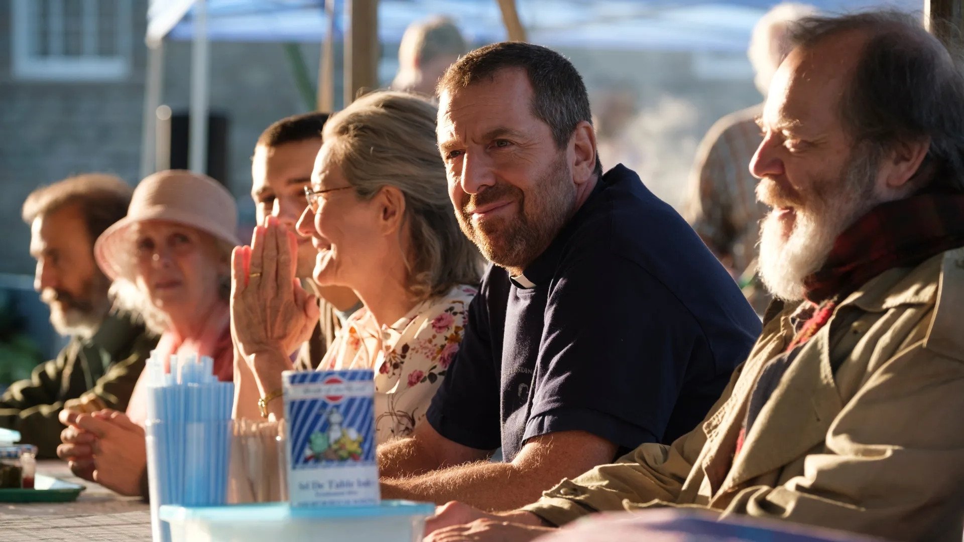 For more than 25 years, Marc Côté, street chaplain and parish priest, has lived with the poor and the homeless. Today, Marc is a worn-out man. Exhausted from running his church, which serves as a shelter, and overwhelmed by the bills they can no longer pay, Marc must face the facts: he will have to shut down his church. Like a call from Providence, he inherits a property in the Bas-du-Fleuve region and decides to take a group of homeless people with him, who, like himself, need a vacation.