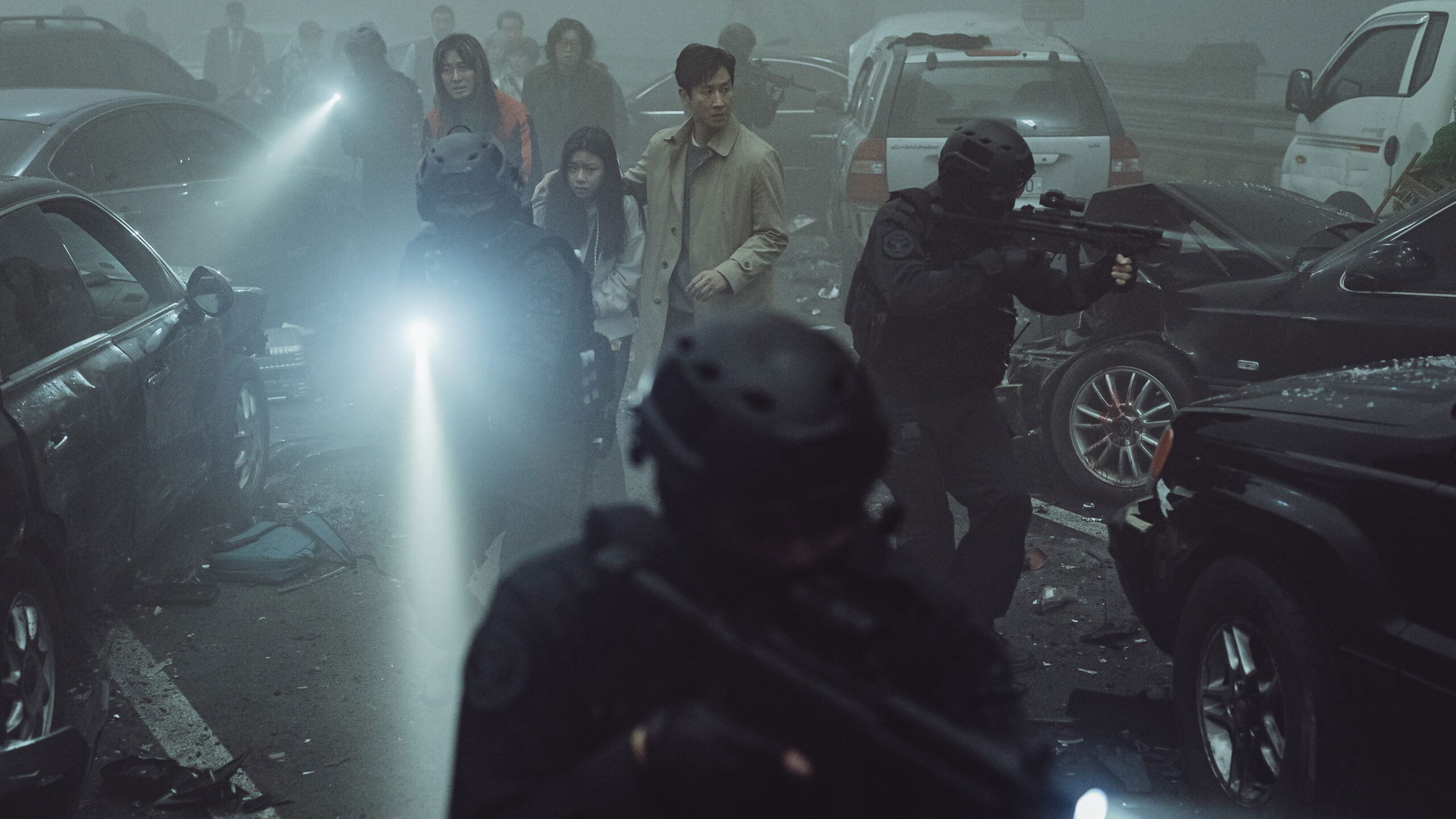Due to sudden deteriorating weather conditions, visibility on the Airport Bridge is severely impaired, leaving people stranded and at risk of the bridge collapsing due to a series of chain collisions and explosions. Amidst the chaos, the canine subjects “Echo” from the military experiment “Project Silence,” who were being transported in secret, break free, and all human survivors become targets of relentless attacks.