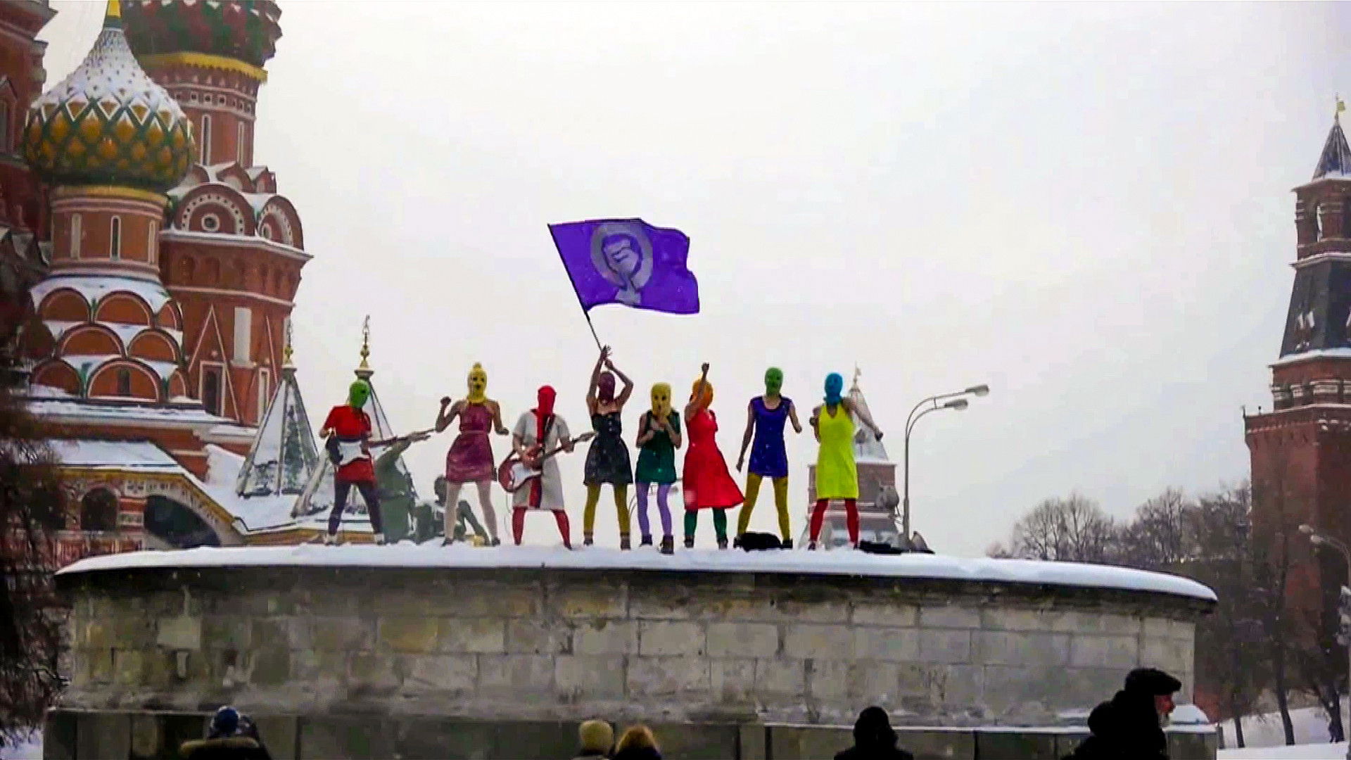 In the winter of 2011, after a controversial election, Vladimir Putin was reinstalled as president of Russia. In response, hundreds of thousands of citizens rose up all over the country to challenge the legitimacy of Putin’s rule. Among them were a group of young, radical-feminist punk rockers, better known as Pussy Riot. Wearing colored balaclavas, tights, and summer dresses, they entered Moscow’s most venerated cathedral and dared to sing “Mother Mary, Banish Putin!” Now they have become victims of a “show” trial.