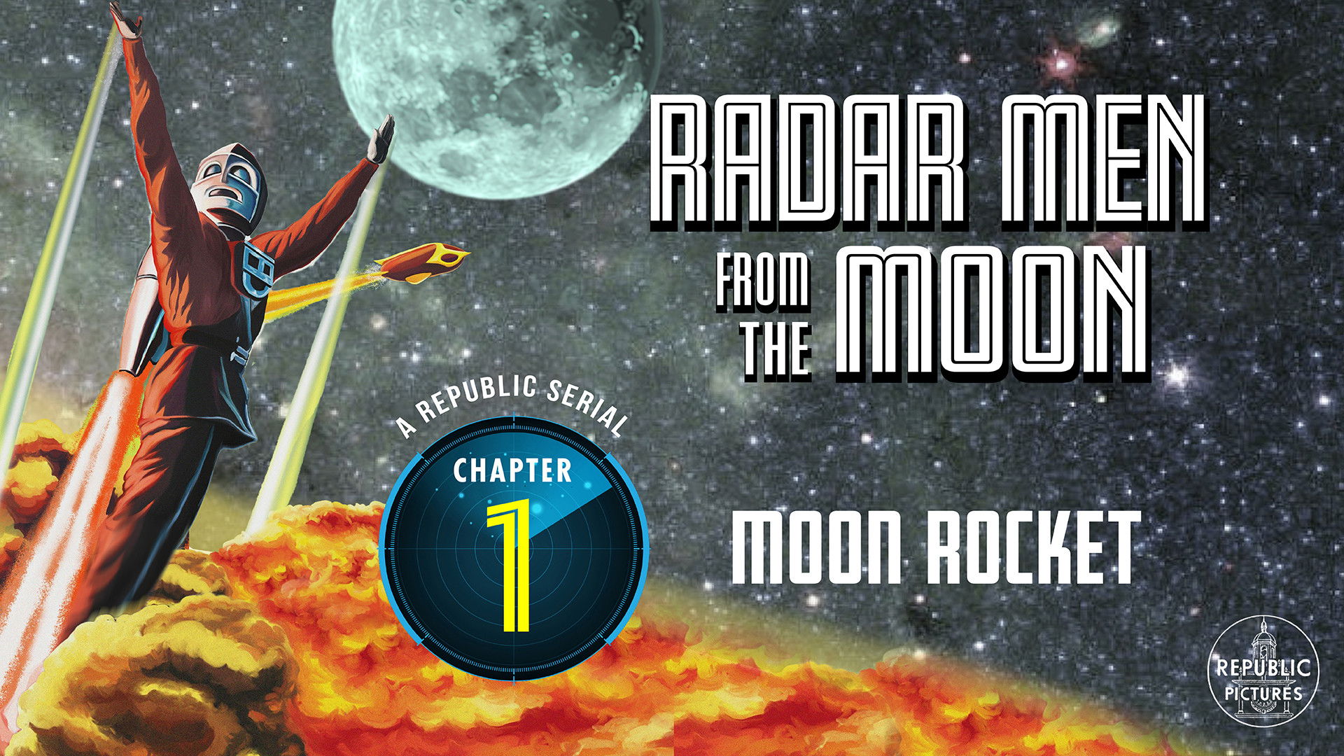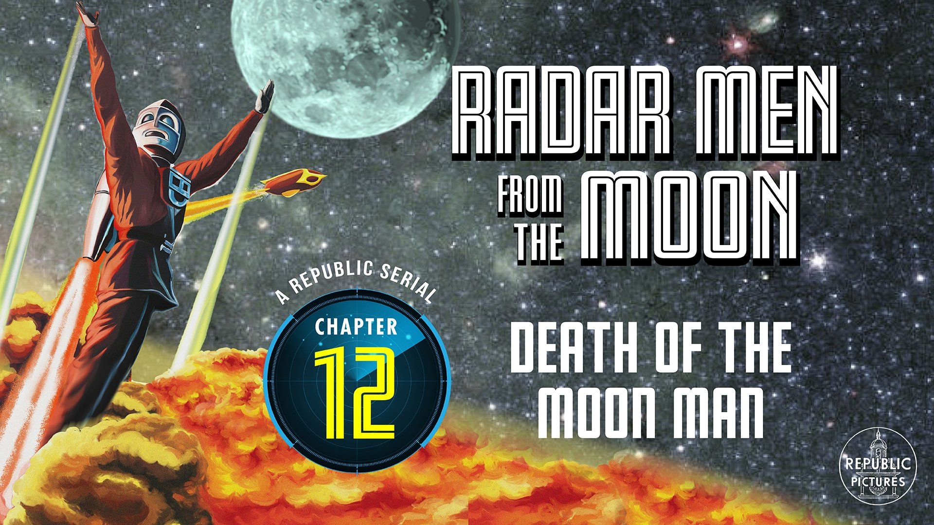 Commando Cody, ‘Sky Marshal of the Universe’, works with American scientists Joan Gilbert and Ted Richards in the development of a flying suit and a rocket to the Moon. When the nation’s defences are being sabotaged and destroyed, Cody learns that an atomic-gun is being used and that the men on the moon are the culprits.