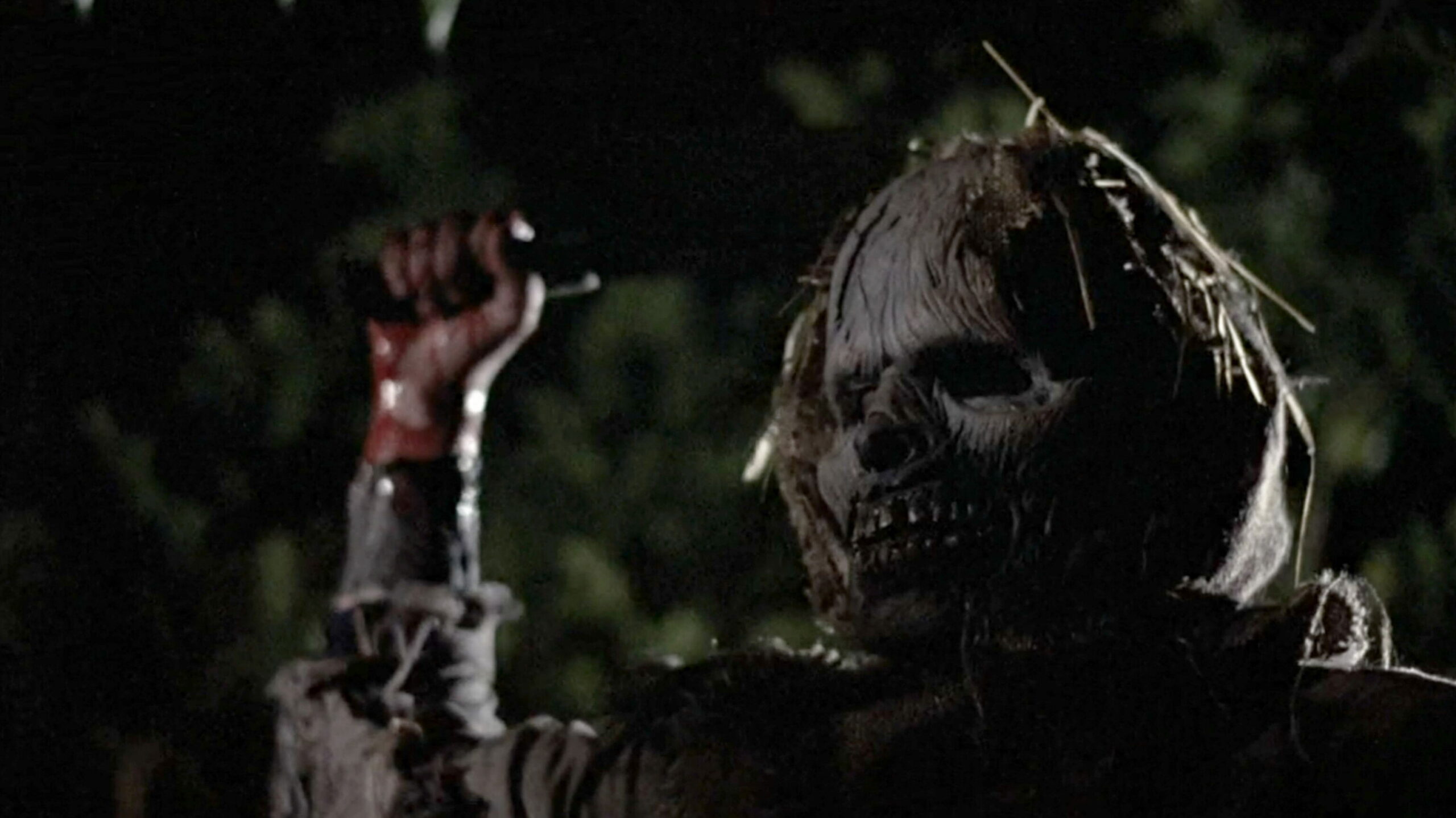 Five men heist the Camp Pendleton payroll and kidnap a pilot and his daughter, who are forced to fly them to Mexico. Enroute a double cross has one of the thieves parachute with the loot into an abandoned farm surrounded by strange scarecrows. The rest of the team jump after their loot and their former partner. Everything happens during the course of one very dark night.