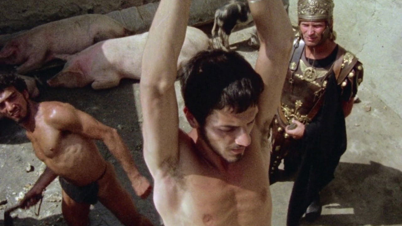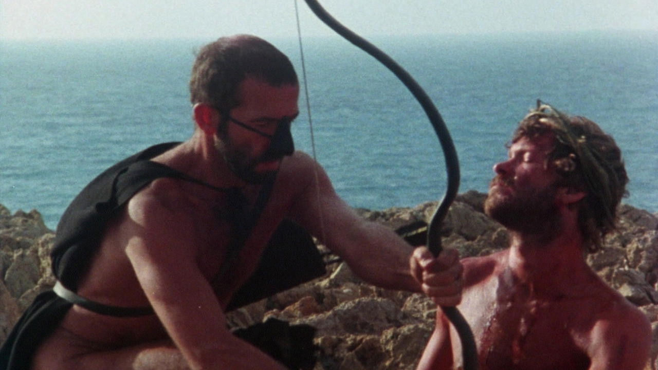 Rome, AD 303. Emperor Diocletian demotes his favourite, Sebastian, from captain of the palace guard to the rank of common soldier and banishes him to a remote coastal outpost where his fellow soldiers, weakened by their desires, turn to homosexual activities to satisfy their needs. Sebastian becomes the target of lust for the officer Severus, but repeatedly rejects the man’s advances. Castigated for his Christian faith, he is tortured, humiliated and ultimately killed.