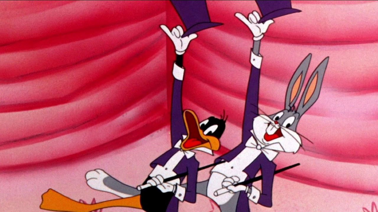 Bugs and Daffy are vaudevillians competing for praise from the audience. They love Bugs no matter what; just the opposite for Daffy.