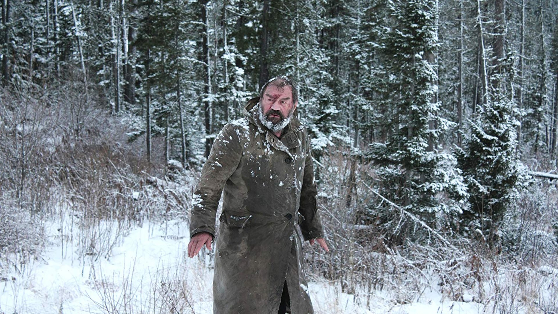 Siberia. Late autumn. In taiga, in the deserted village there lives an old man Ivan & his seven-year-old grandson Leshia. A pack of feral dogs devours everything alive in the neighborhood. One of these dogs is Leshia’s best friend. Sometimes their relative uncle Yuri brings food to them. Once on his way back from Ivan’s village uncle Yuri is attacked by dogs & perishes. Ivan & Leshia stay without supply. Once Leshia witnesses Ivan shooting at ‘his’ dog & runs away. The old Man finds him in a dry well, but he fails to get him out on his own. Ivan sets out through taiga in search of help. Now the dogs are hunting him… And the boy is waiting for his father…
